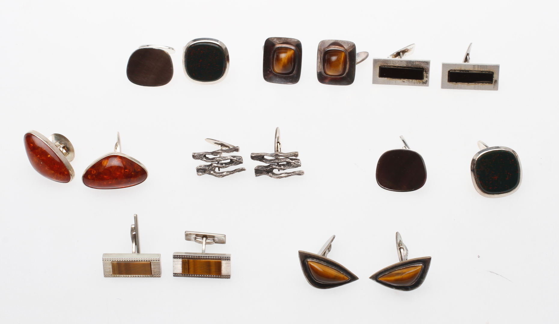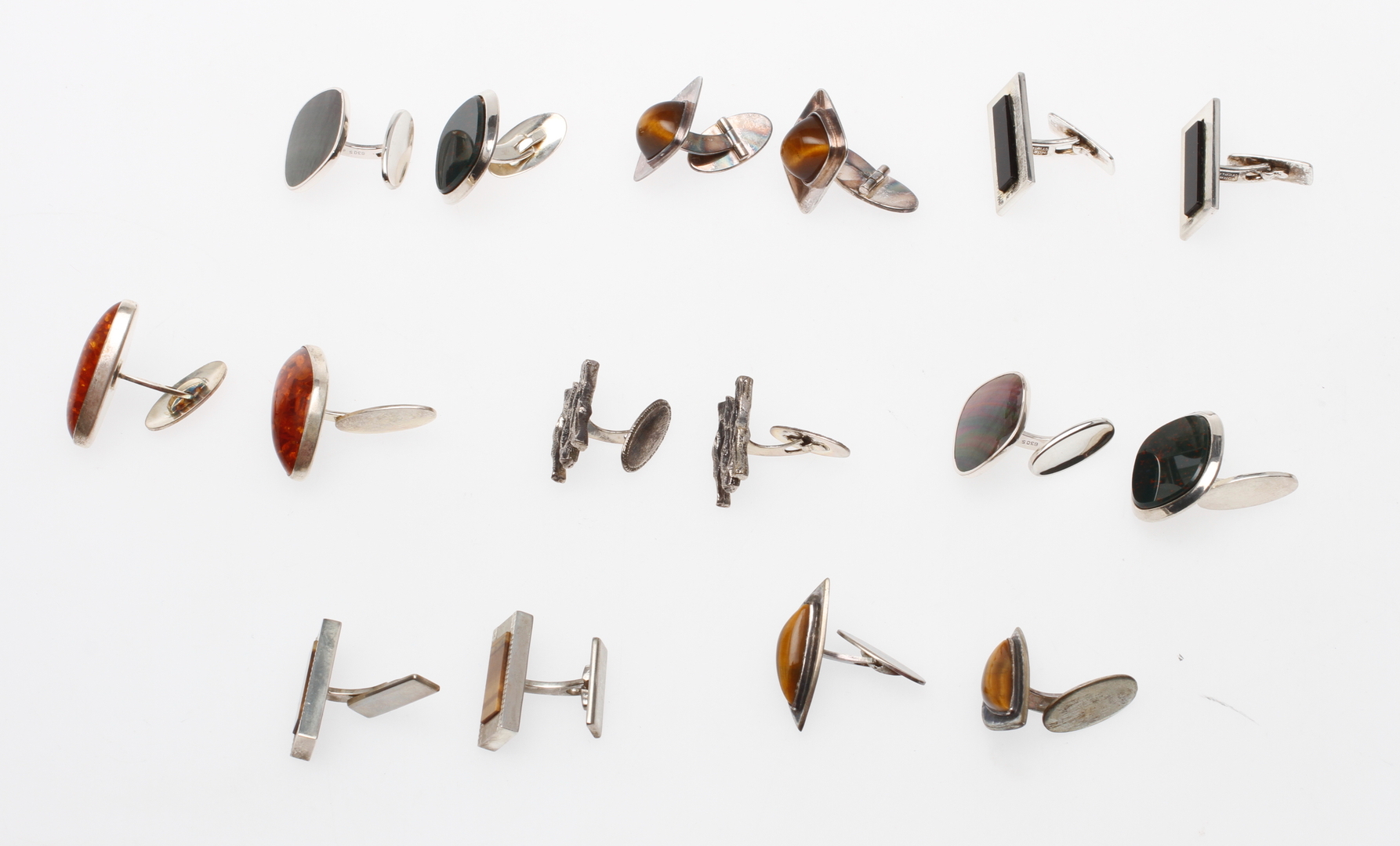 60997. MANSCHETTKNAPPAR, 8 par, silver med stenar.