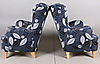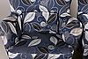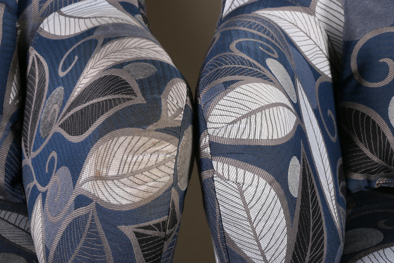 Ena fåtöljen med smutsig klädsel.