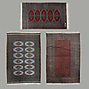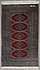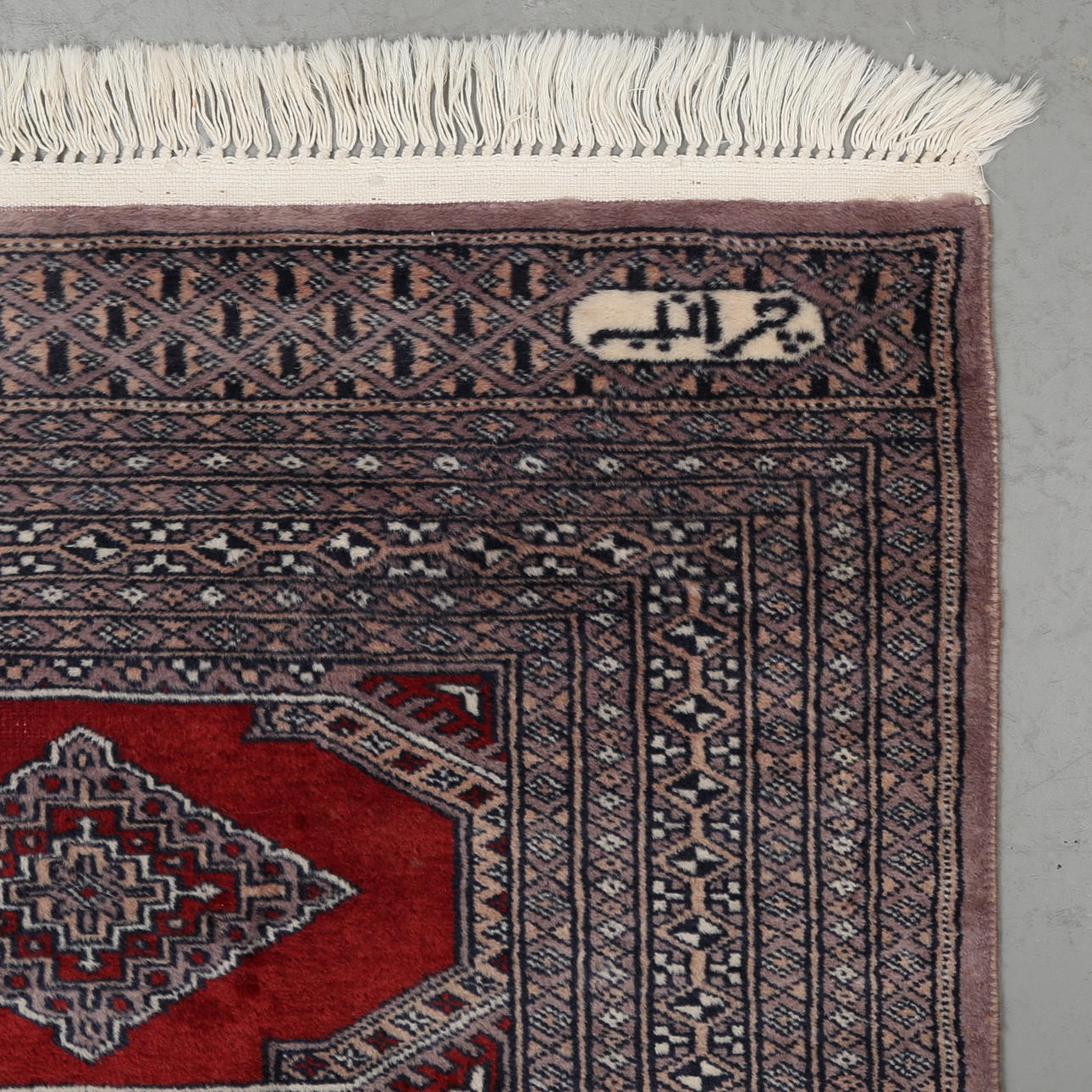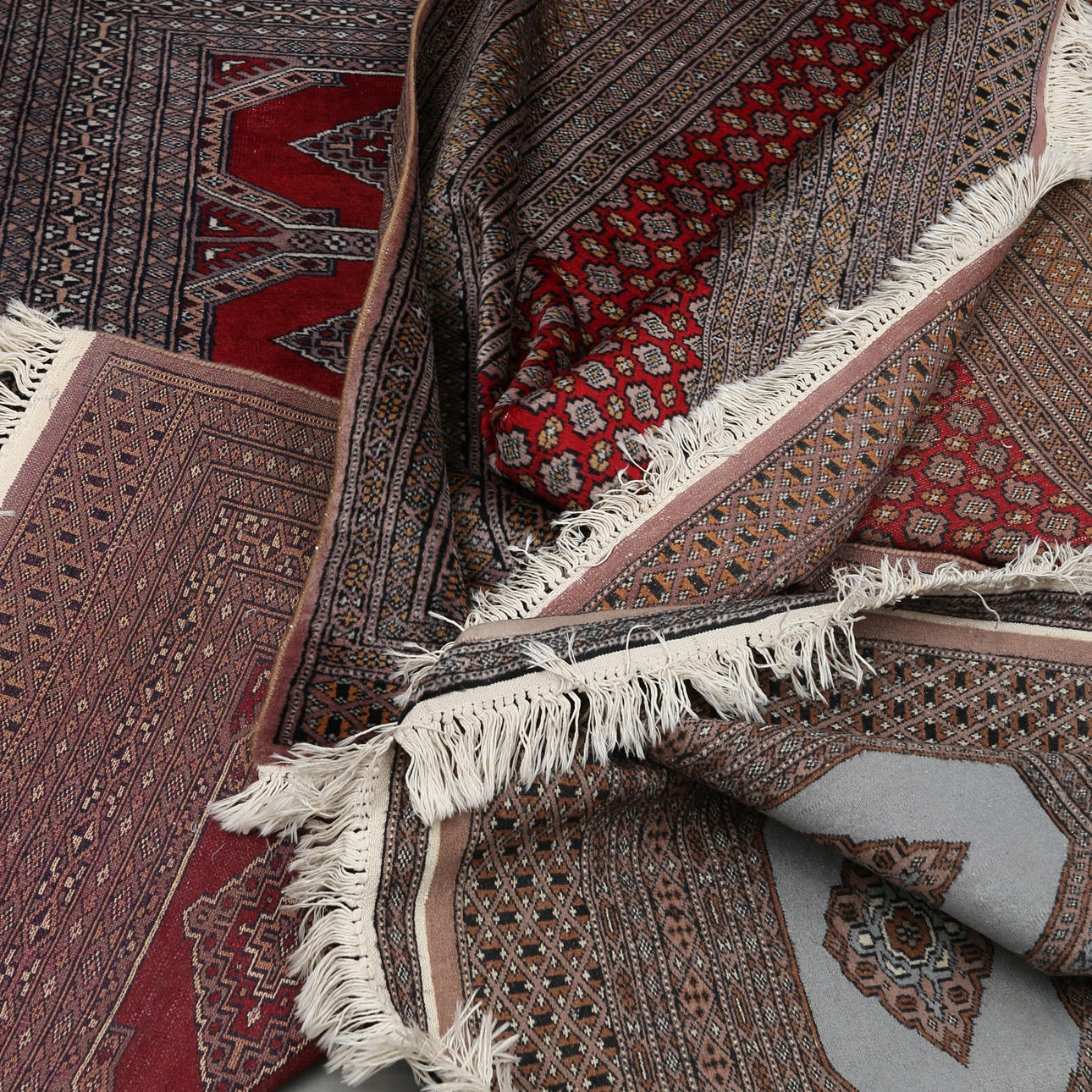 Tre bocharamönstrade pakistanska mattor i ull på bomullsvarp.