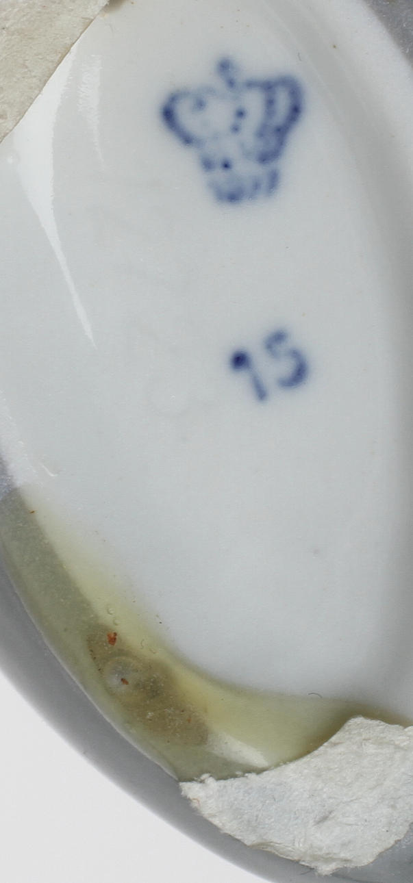 Slitage. Avslag på figurin Napoli Dresden. Limrester på sjöjungfru.