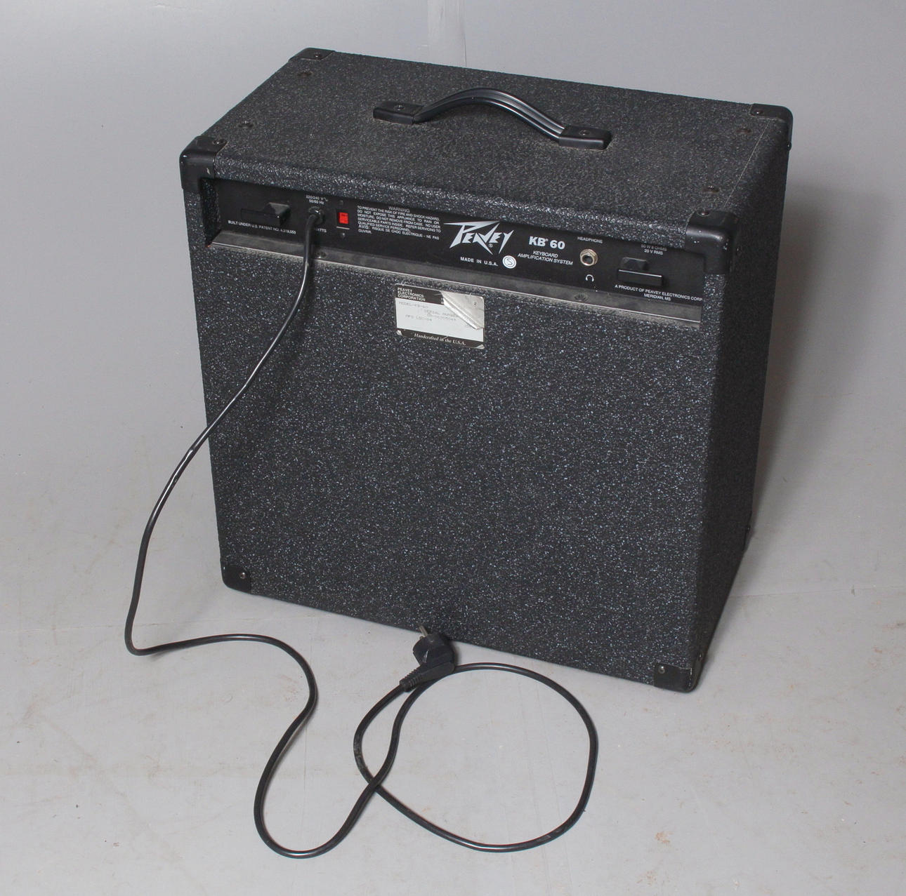 Klassisk förstärkare för keyboard eller andra line instrument med rak frekvenskurva. Höjd 53, bredd 51, djup 28 cm.