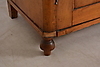 Tvådelat. Underdel med skåpsdörrar samt två lådor. Överdel med skåpsdörrar i vitrin med bakomliggande hyllinredning. Längd 120. Bredd 45. Höjd 234 cm.