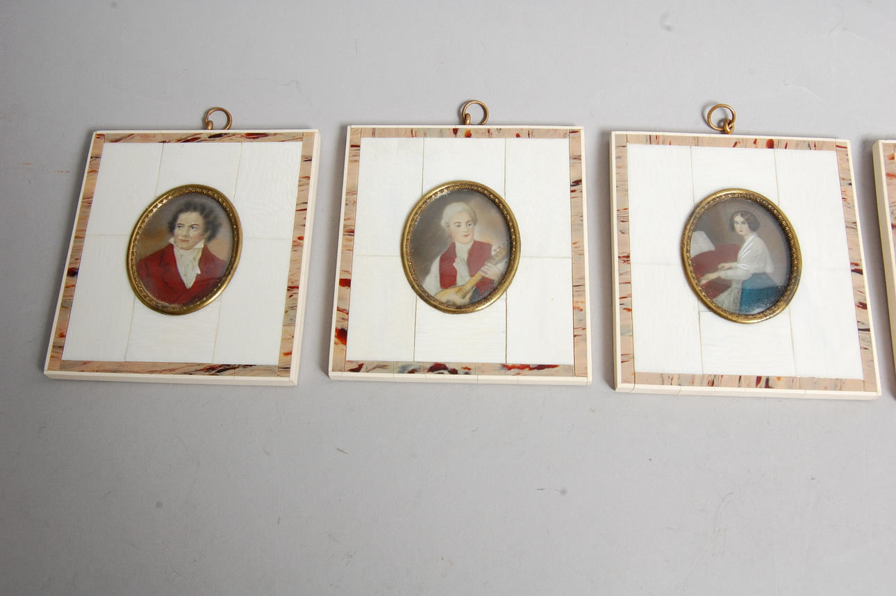 61928. MINIATYRMÅLNINGAR, 5 delar, ramar i ben.