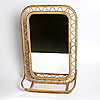 Rotting samt bambu. Rektangulär form, genombruten dekor, hyllplan med glas. Bredd ca 49, höjd 74 cm.
