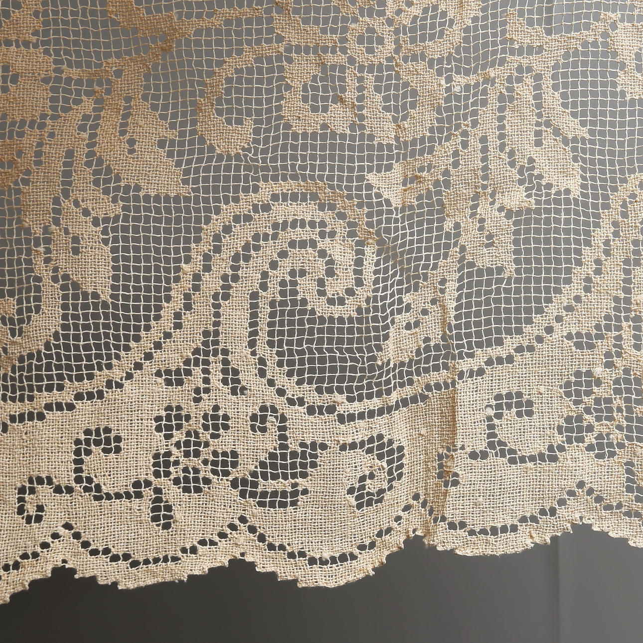 GARDINLÄNGDER, 3 st, virkade, 1900-talets början.