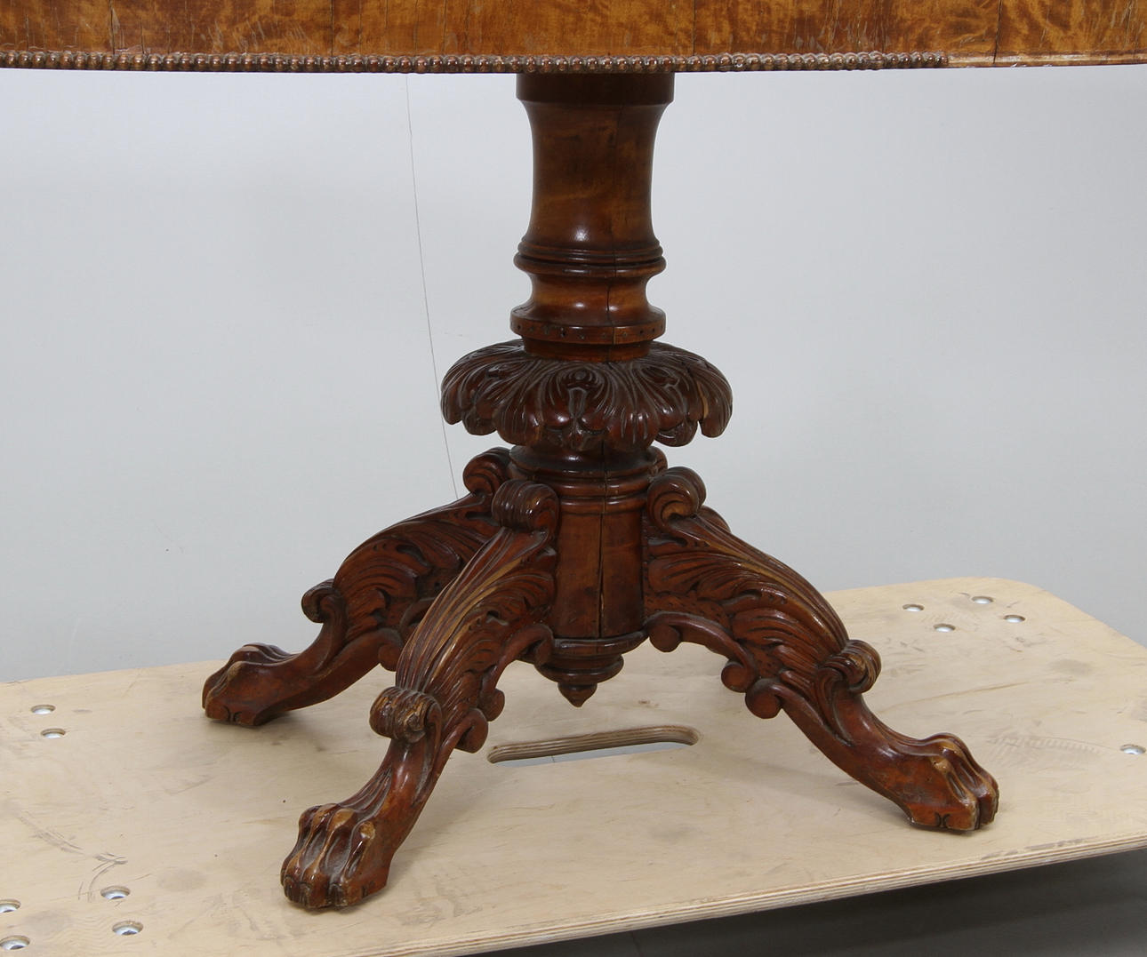 Rikt skuren fot, dekor med pärlband. Skivans mått 141x80 cm.