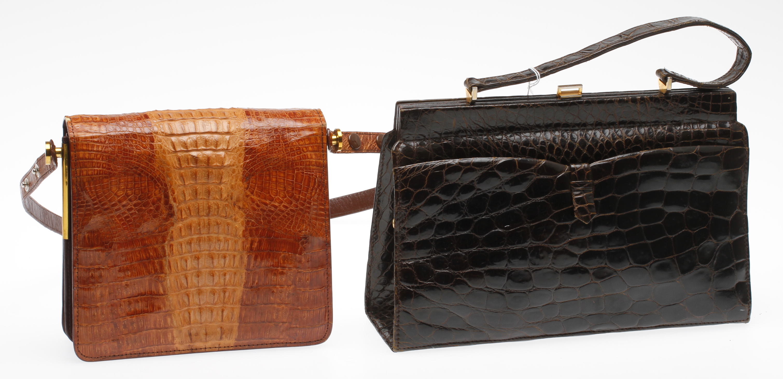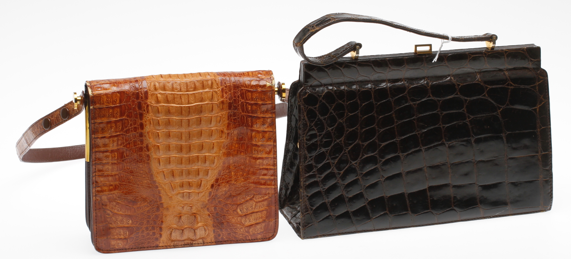 62320. HANDVÄSKOR, 2st, krokodil, bl.a. Berma Paris.