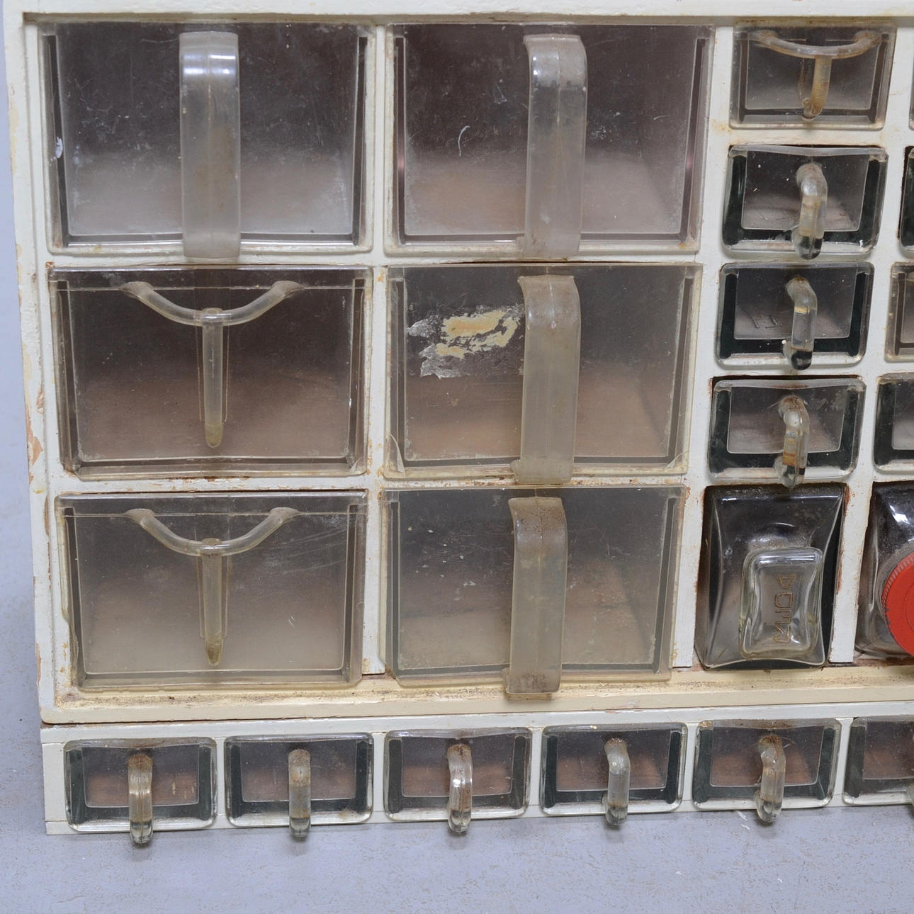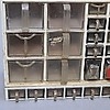 Glas och plastlådor. Höjd 42 cm Längd 76 cm.