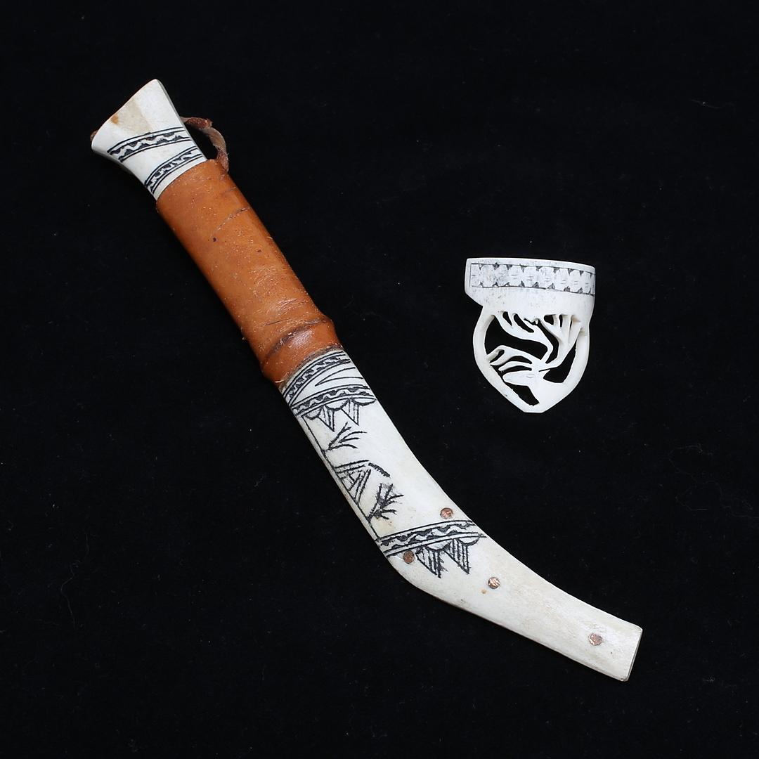 628023. SAMEKNIV samt SCARF-HÅLLARE, horn.
