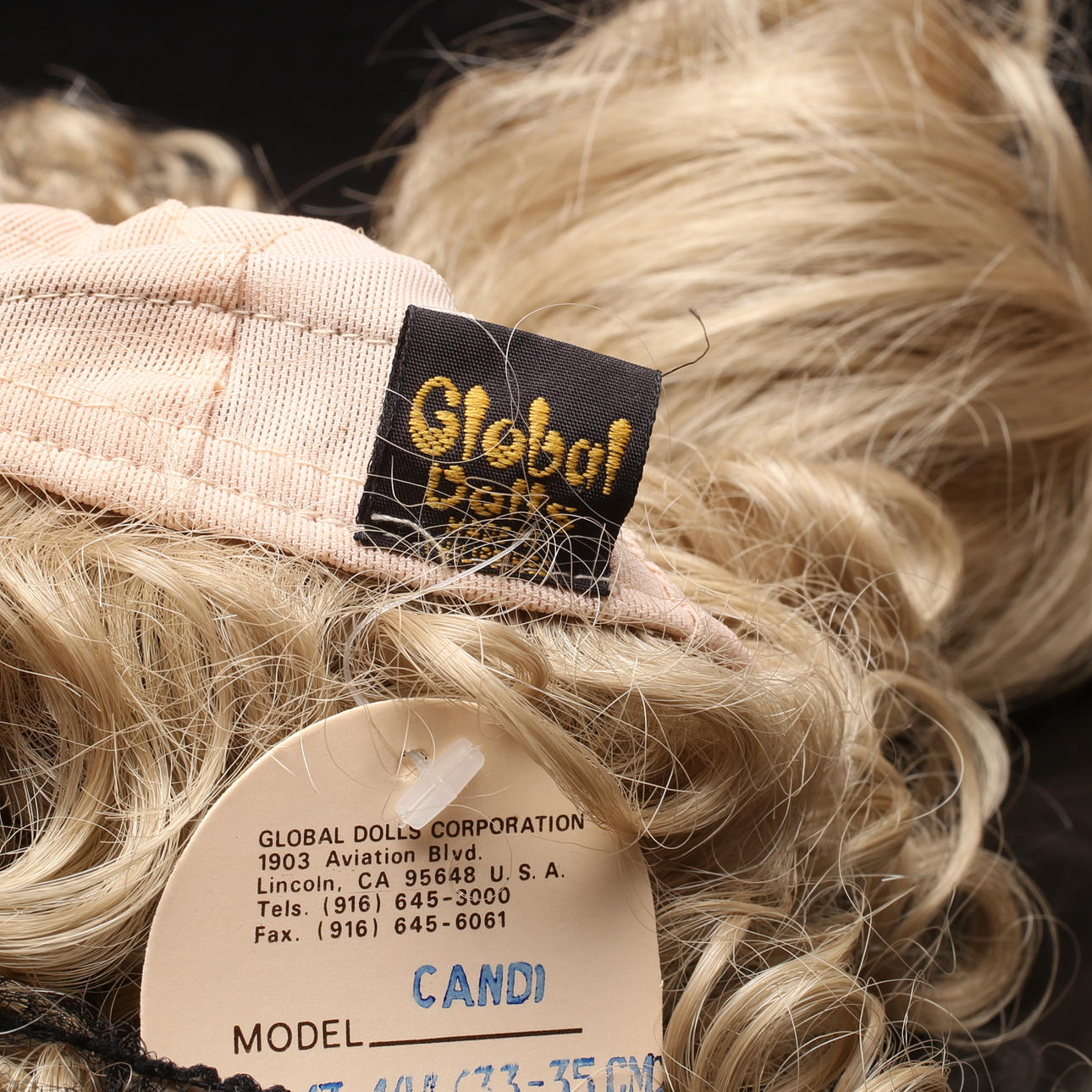 2 st peruk, "Candi" hand styled doll wig, by Global Dolls. 2 st peruk "Krissy" hand styled doll wig, by Global Dolls.