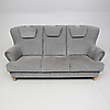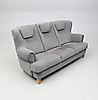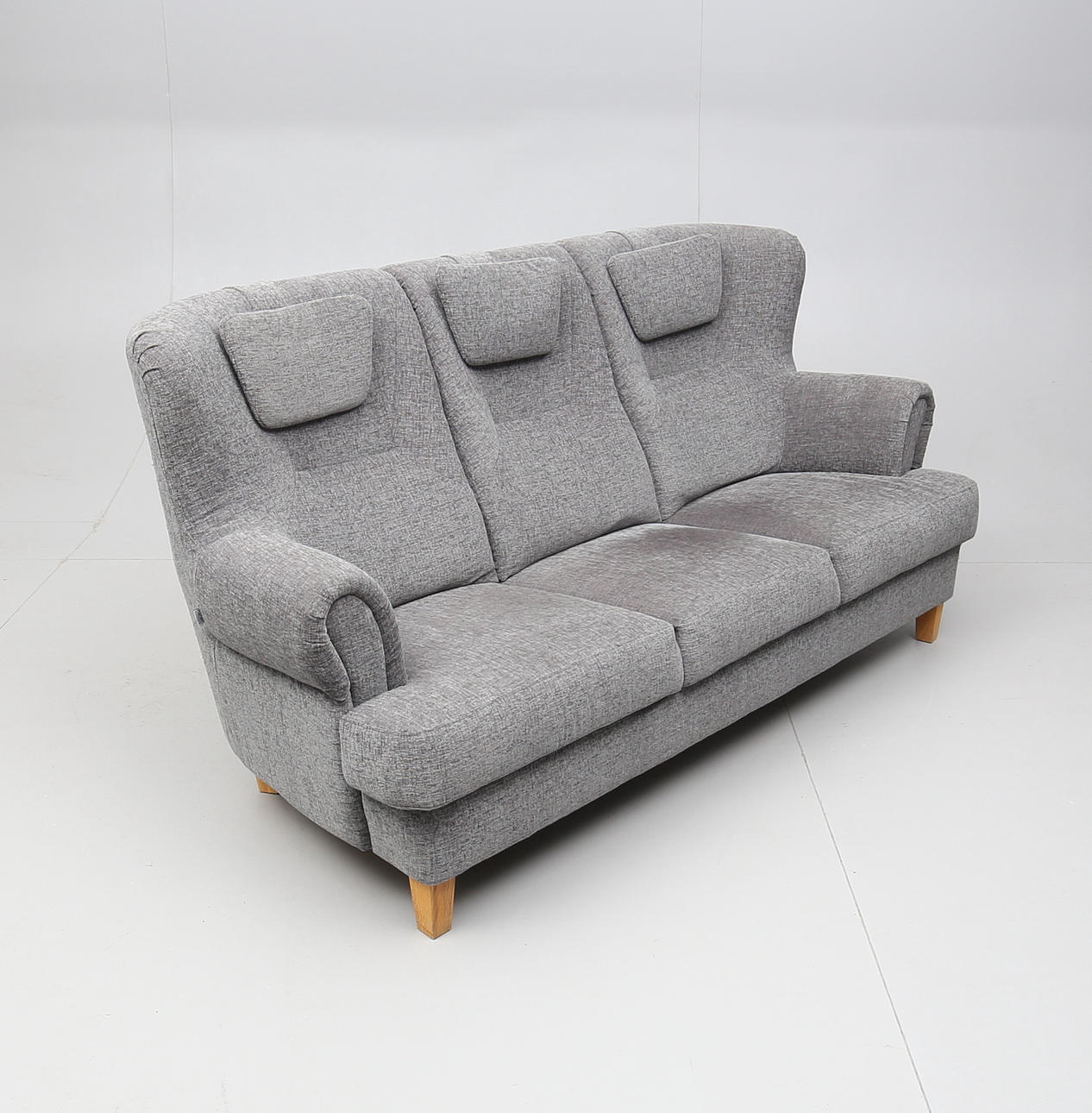 Tresitsig. Fast stoppad rygg och sits. Lösa nackkuddar. Längd ca 198 cm.