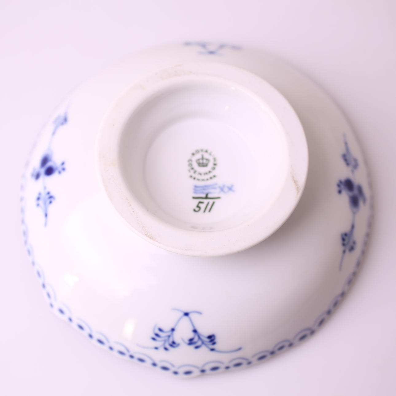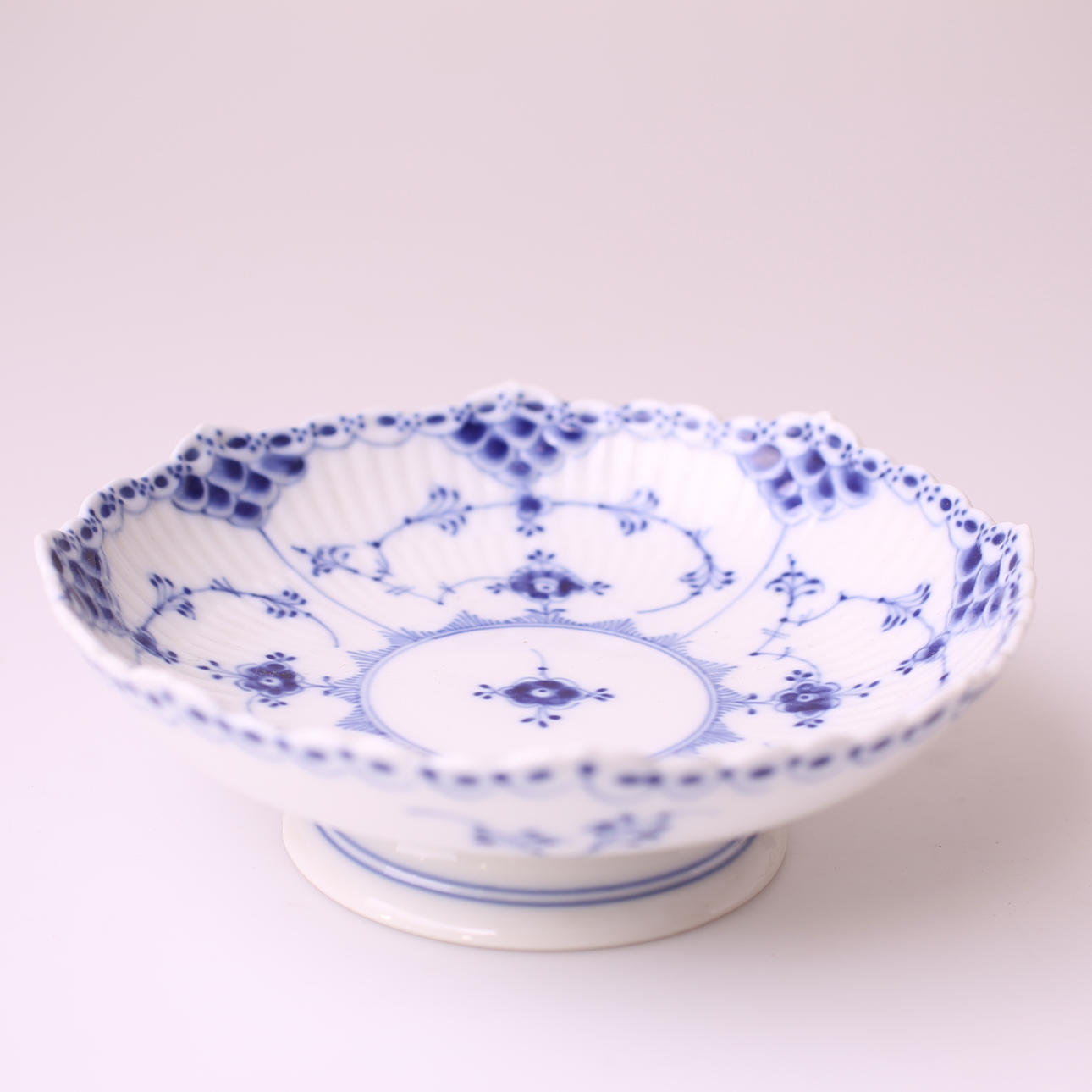 Skål på fot, porslin, kunglig dansk nr 1/511, musselmalet, diameter 17,5 cm.