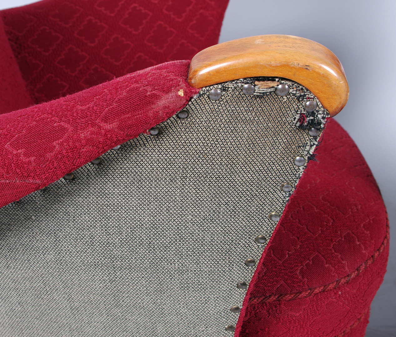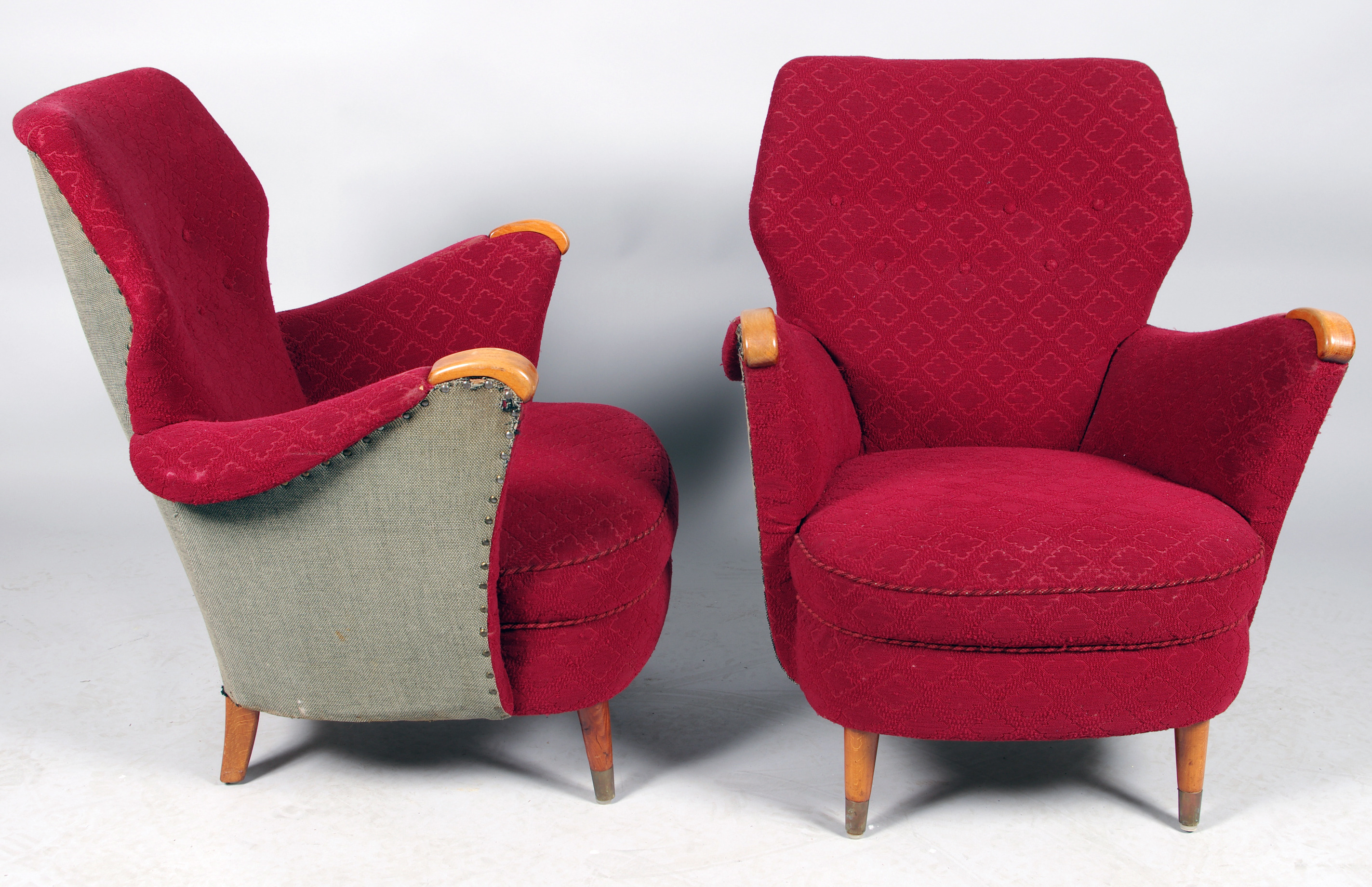 63596. SOFFGRUPP, röd klädsel, 1950-tal.