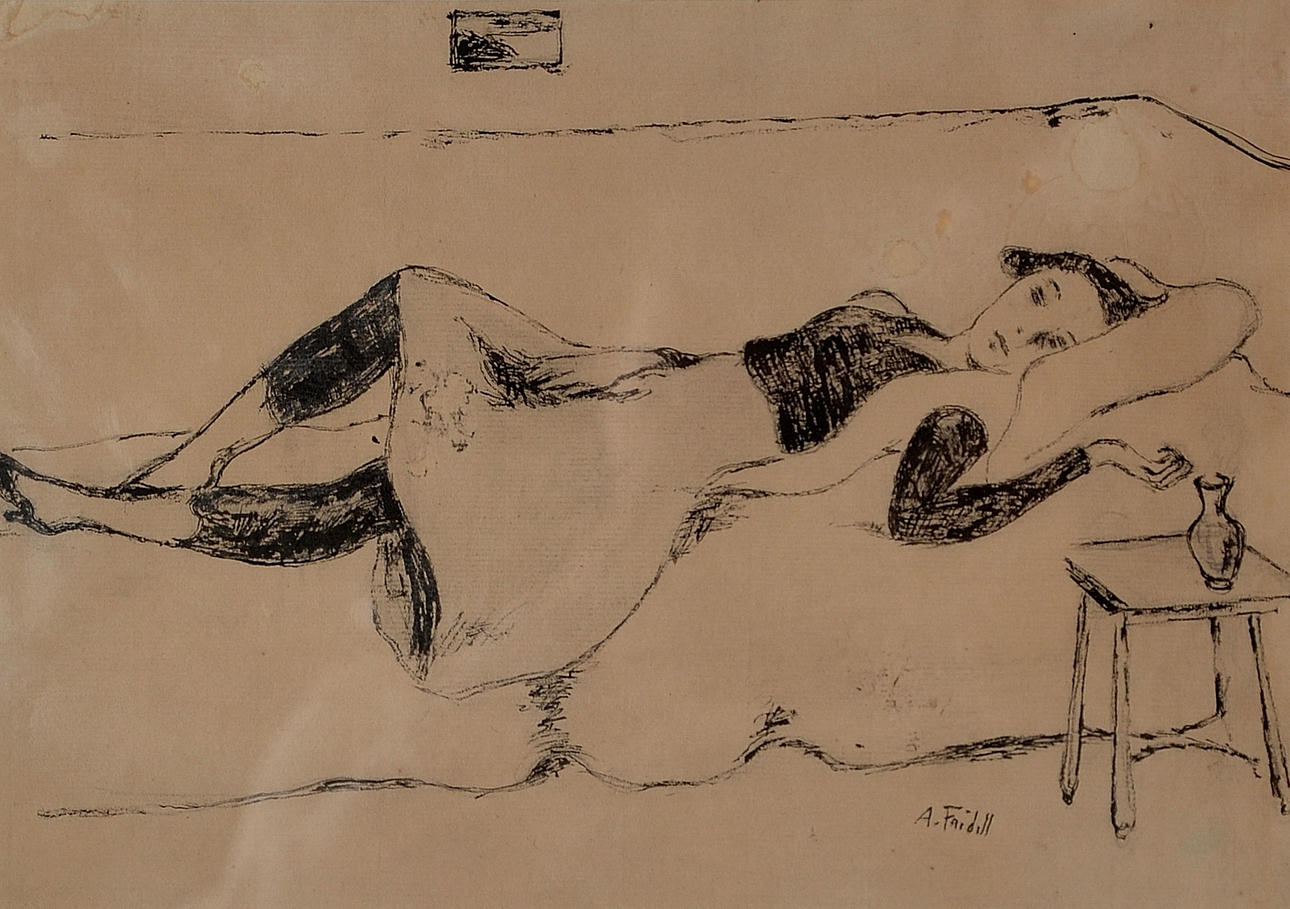 Liggande modell, signerad A Fridell, 20x28,5 cm.