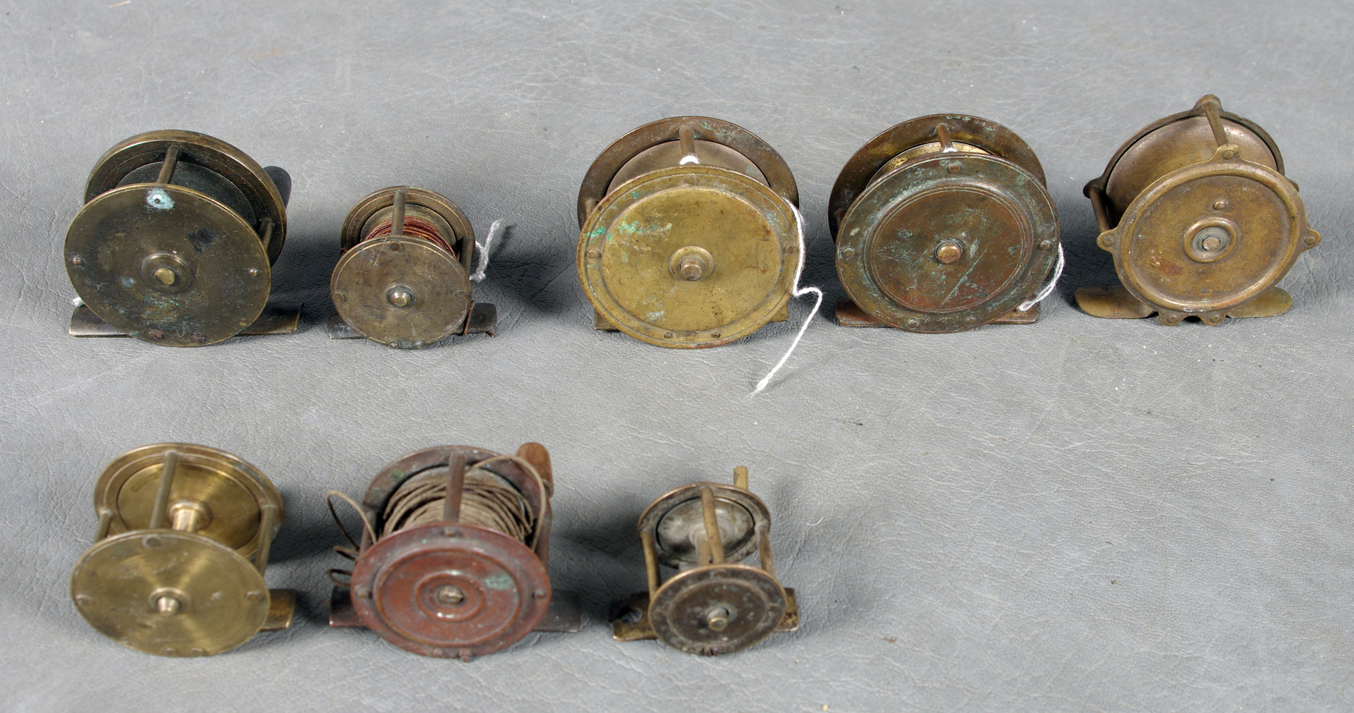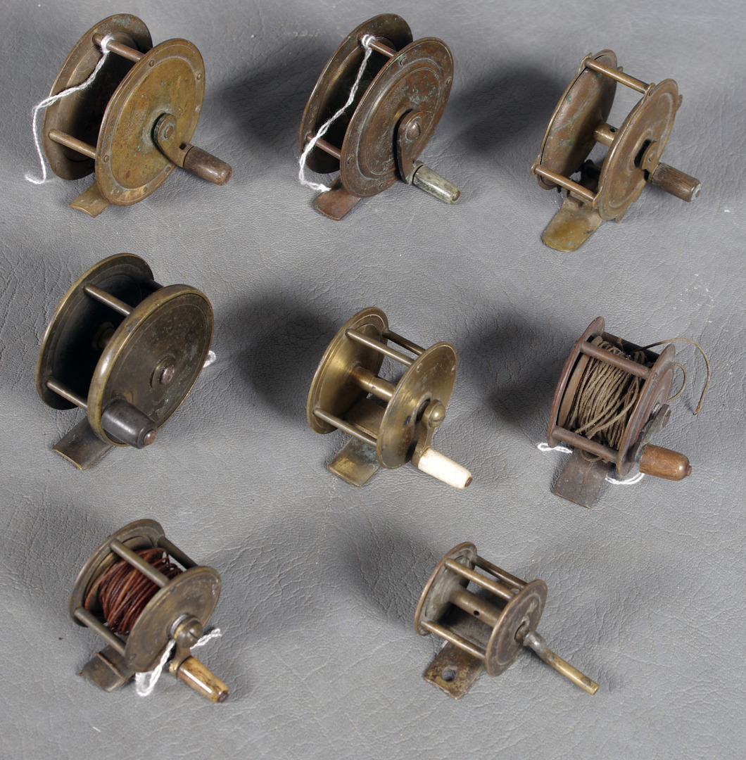 63784. ÄLDRE FLUGFISKERULLAR, metall.