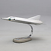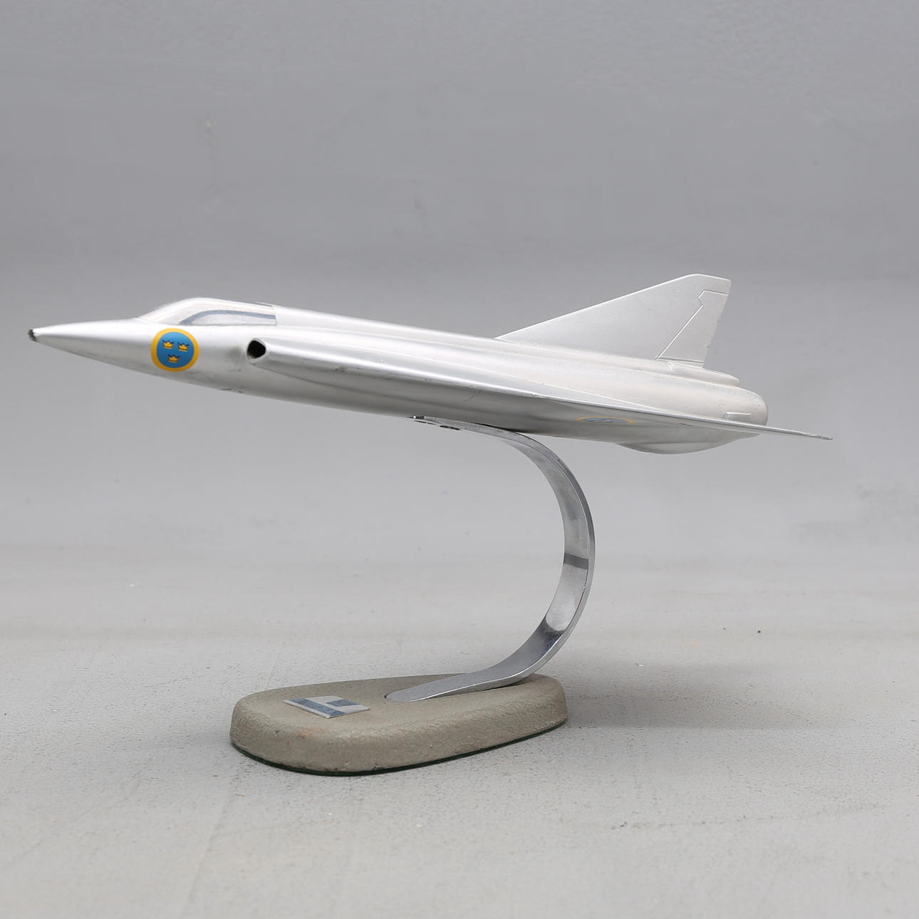 SAAB J35 Draken, flygplansmodell i metall på fot, längd ca. 31 cm.