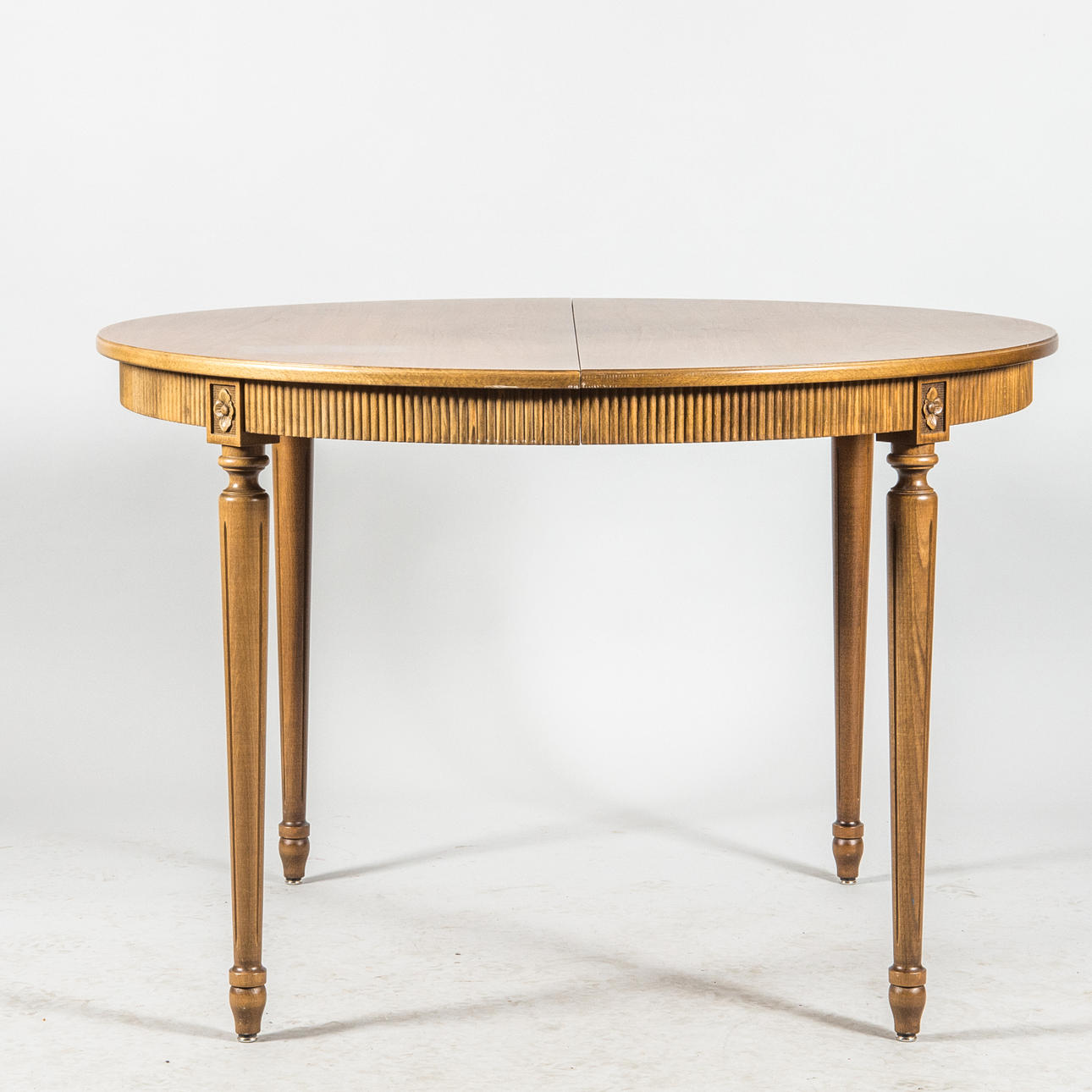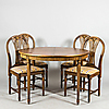Bord, 4 stolar samt 2 iläggsskivor.