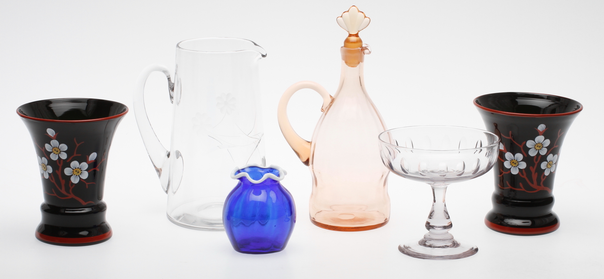 64045. GLASFÖREMÅL, 6 delar, 1900-tal.