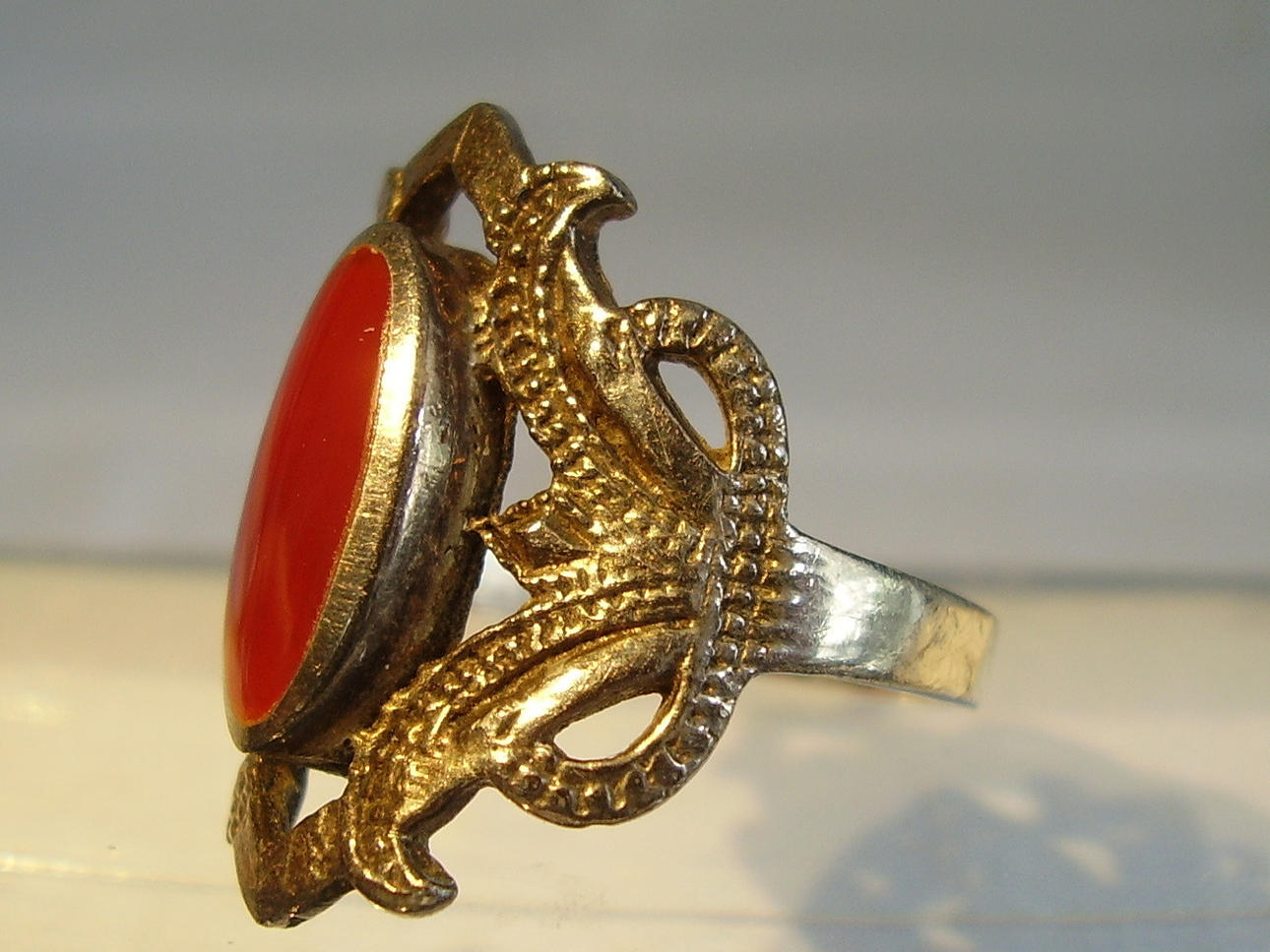 641553. SILVER FILIGRAN RING MED KARNEOL.