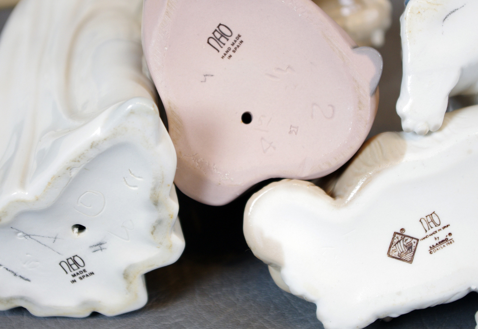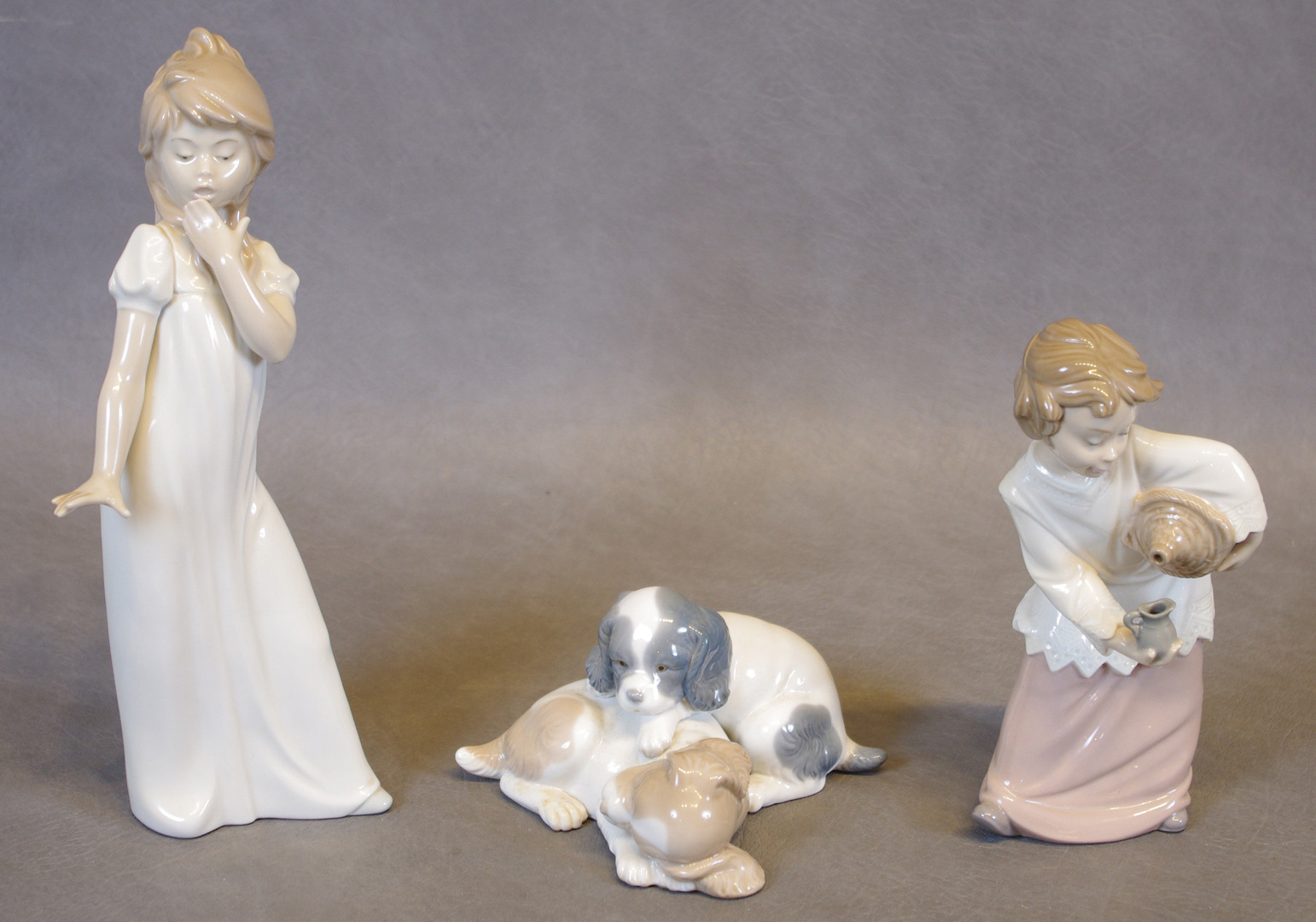 64256. PORSLINSFIGURER, 3 stycken, Nao, Spanien.