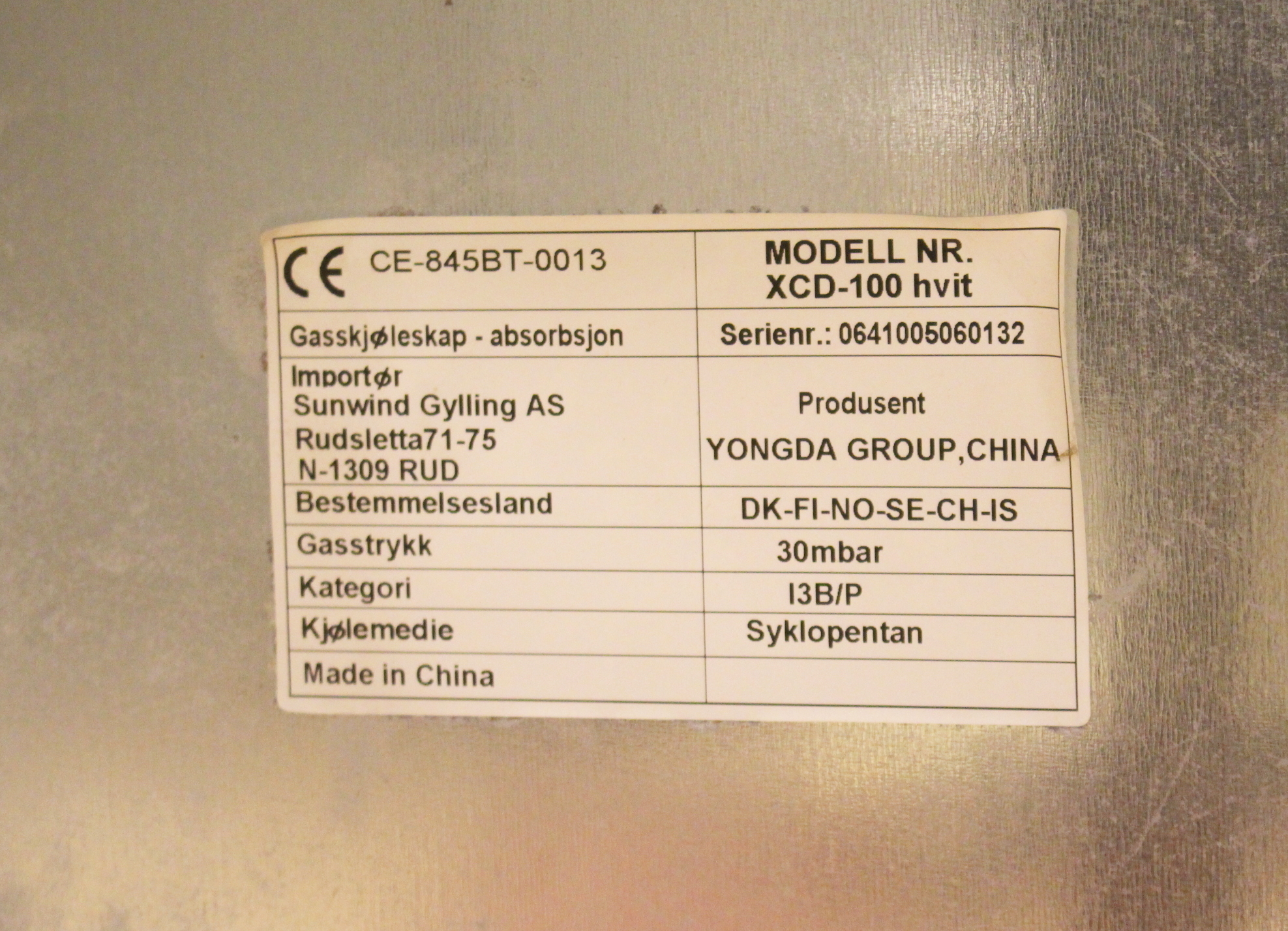 645379. KYLSKÅP, gasol, Sunwind XCD100.