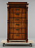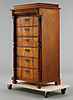 Mahogny. Sjulådig herrbyrå med bakomliggande inredning. Längd 79, bredd 54, höjd 142 cm.