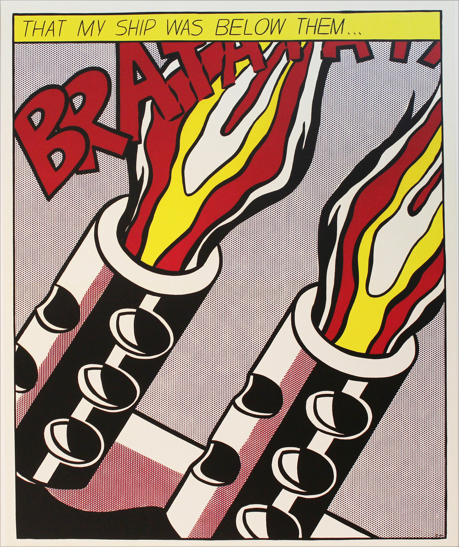 64646. ROY LICHTENSTEIN. "As I opened fire". Triptyck, Offsettryck, (Vintage). Osignerad.