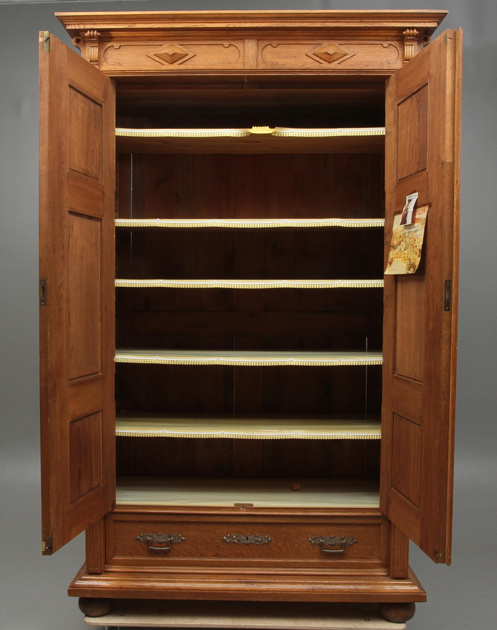 Nyckel finns. Längd ca 137,5, bredd 62,5, höjd ca 220 cm.