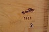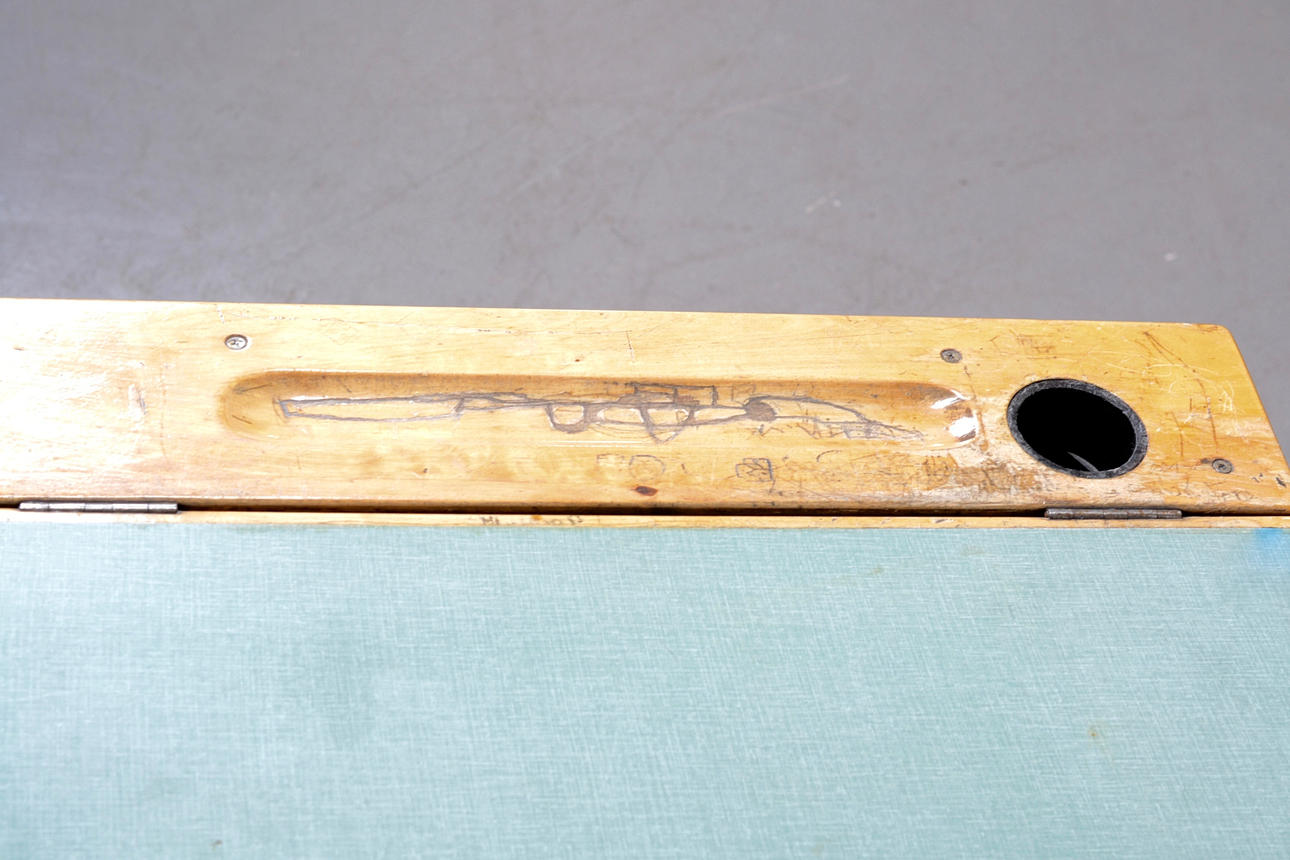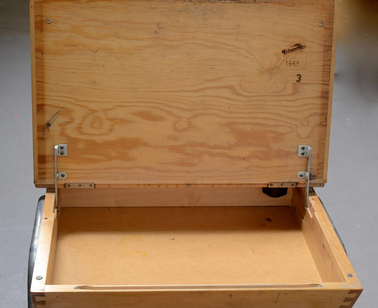 Skolbänk, tillverkad 1965, längd 55cm, bredd 65cm, höjd 71cm.