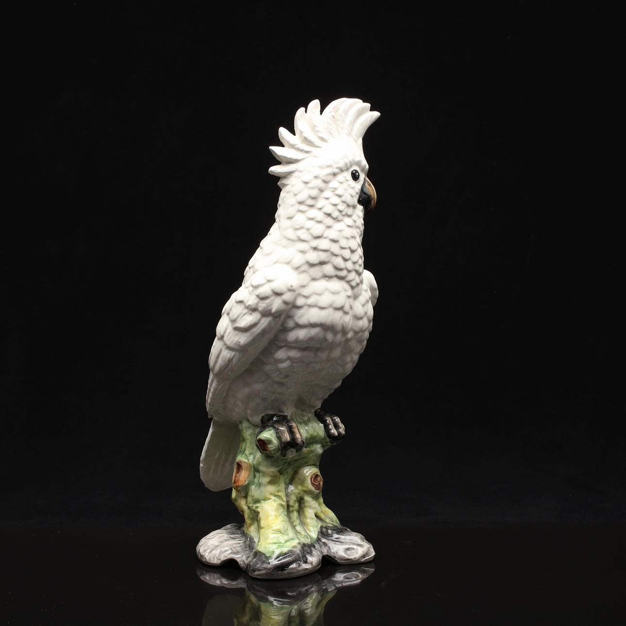 Figurin i form av kakadua, märkt Italy Höjd 32 cm.