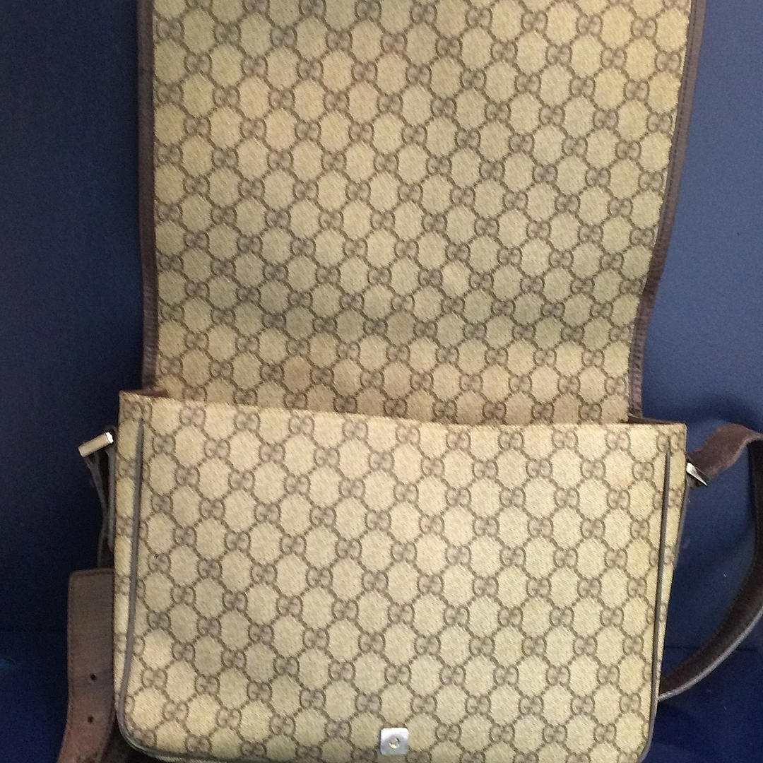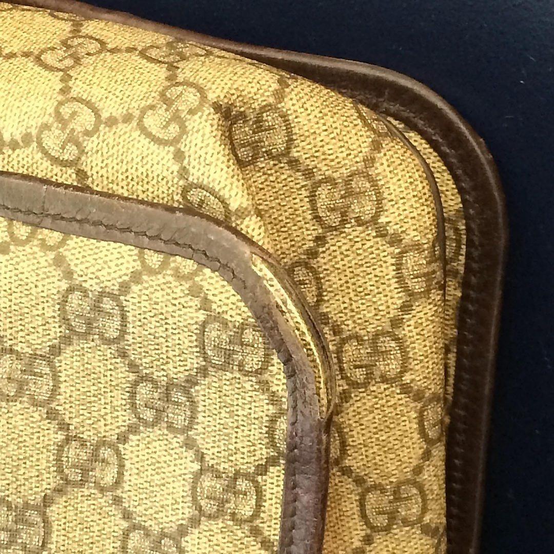 Vissa slitage på tygremsan på baksidan av påsen och läderklädseln.