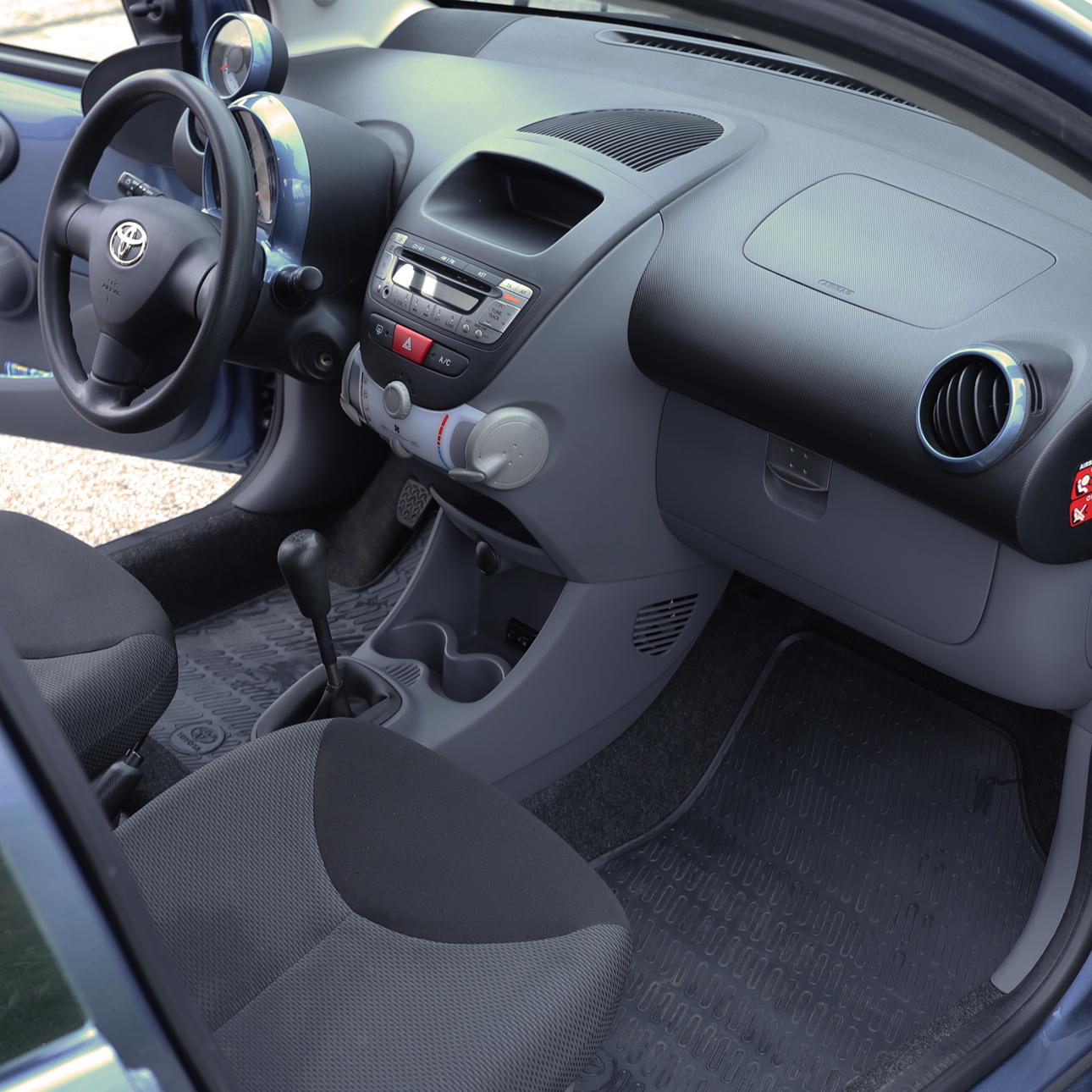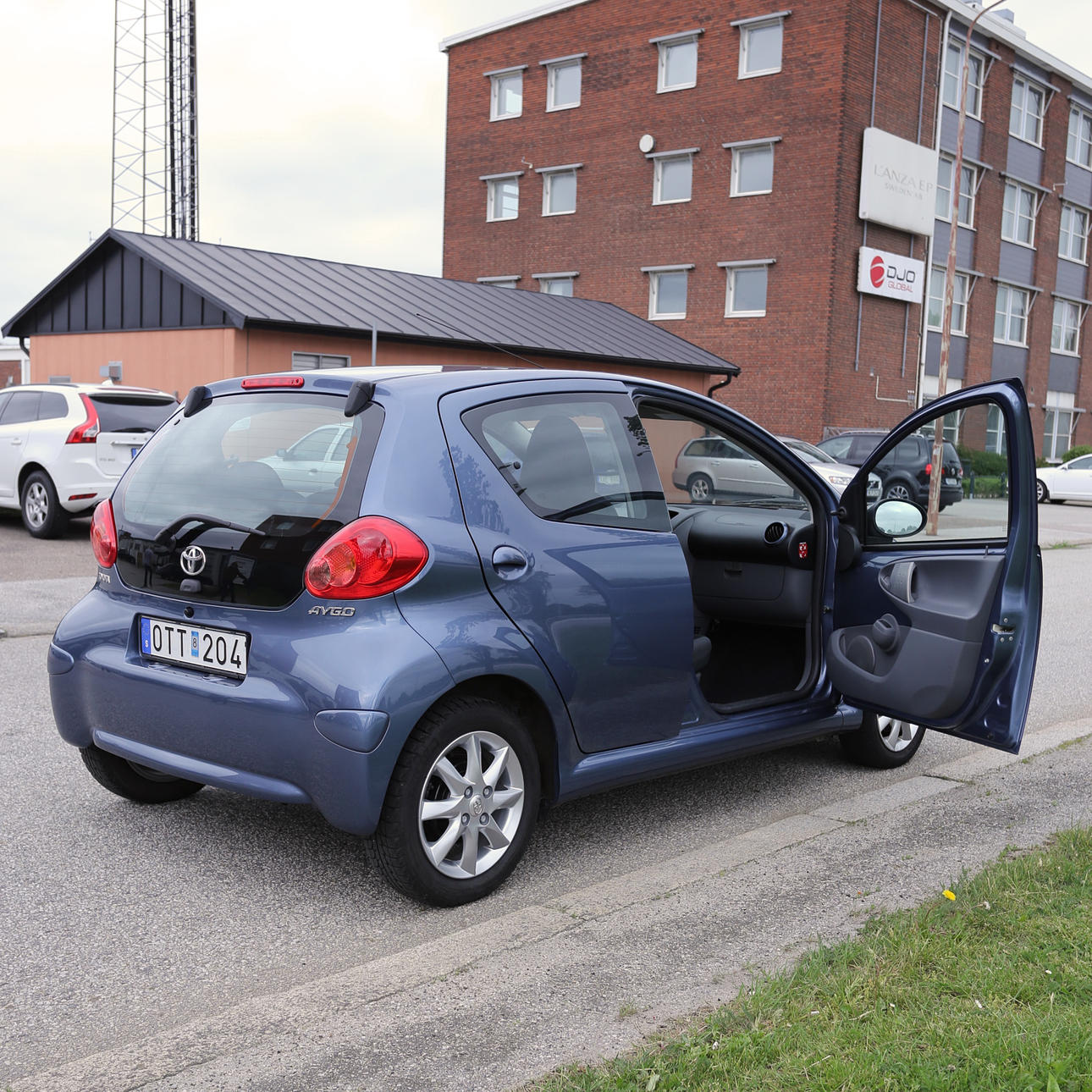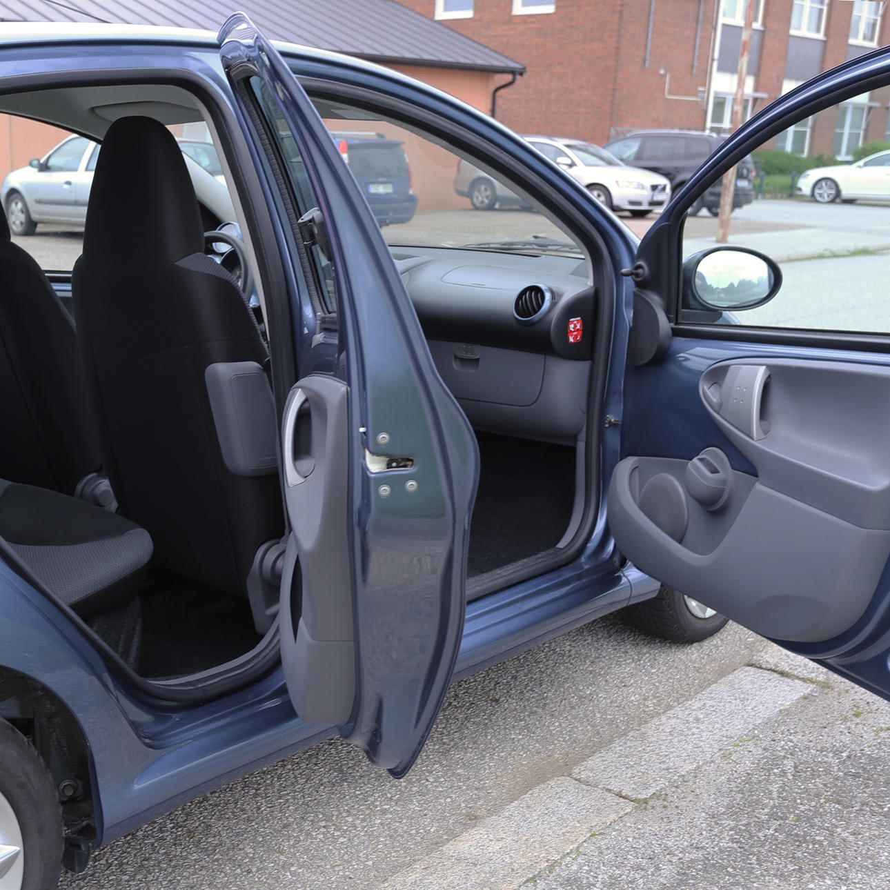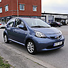 Toyota blå halvkombi, årsmodell 2008, växellådan är manuell och motorn på 68 hk drivs med bensin. Vid blandad körning drar den ca 4.6 liter/100 km