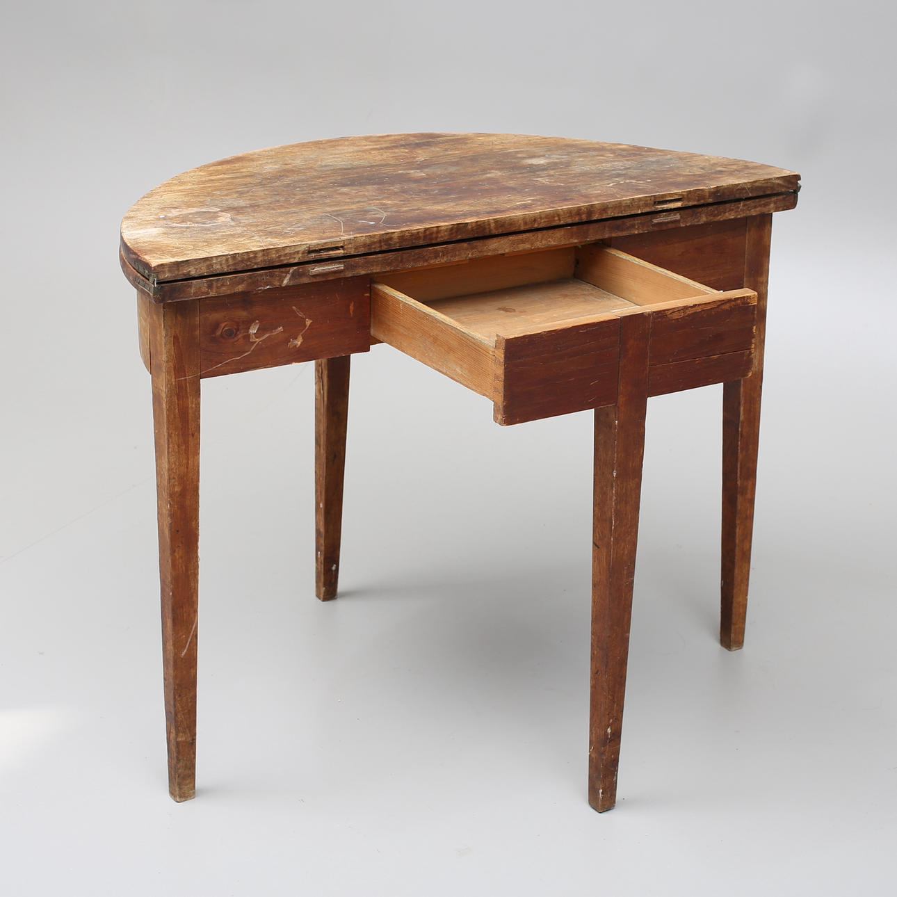 654730. HALVMÅNEBORD med låda, 1800-tal.