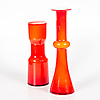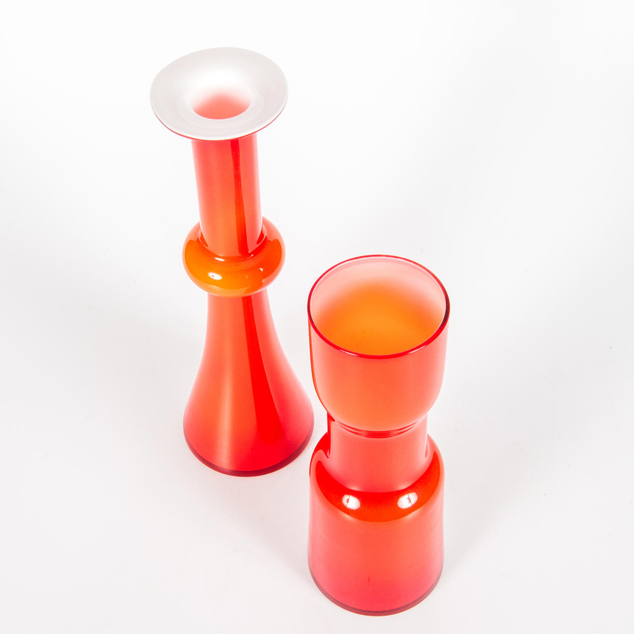657386. VASER, 2 stycken, orange glas, bl.a. "Carneby", Holmegaard.