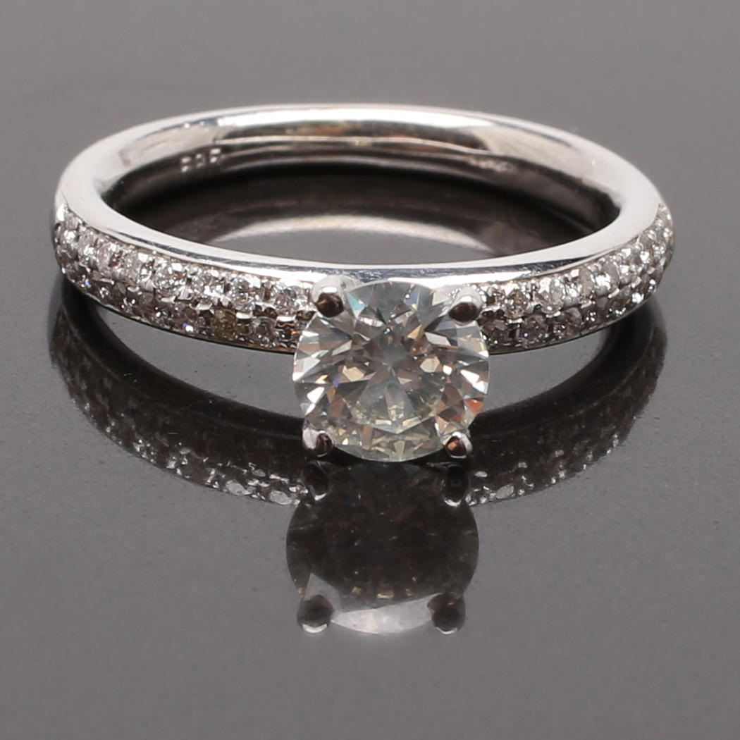 Ring i 14K vitguld med briljantslipade diamanter om totalt 1,40 ct
