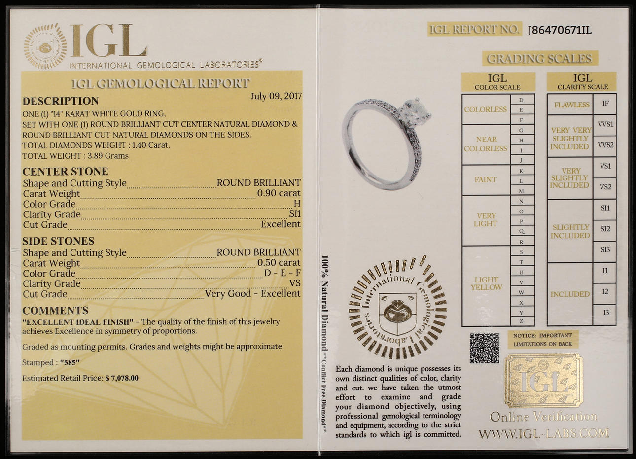IGL Certifikat medföljer.