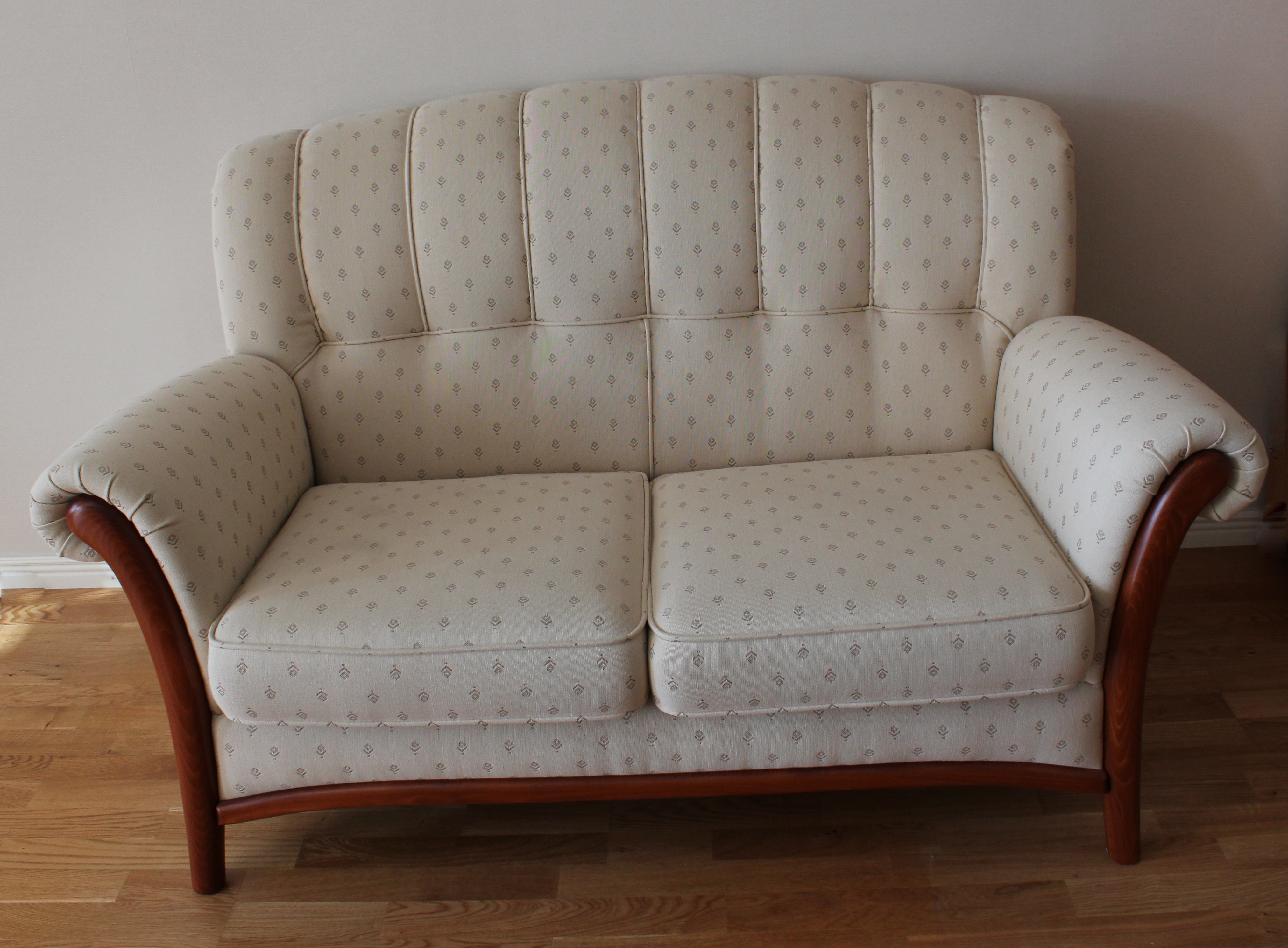 65818. Soffa, 2-sits. Klädd i vit/grått tyg, 2000-tal.