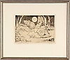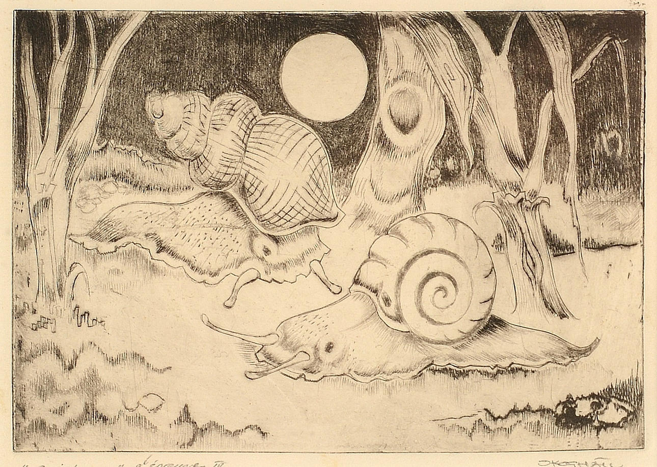 "Sniglar", signerad Skoghäll, 13,5x19 cm.