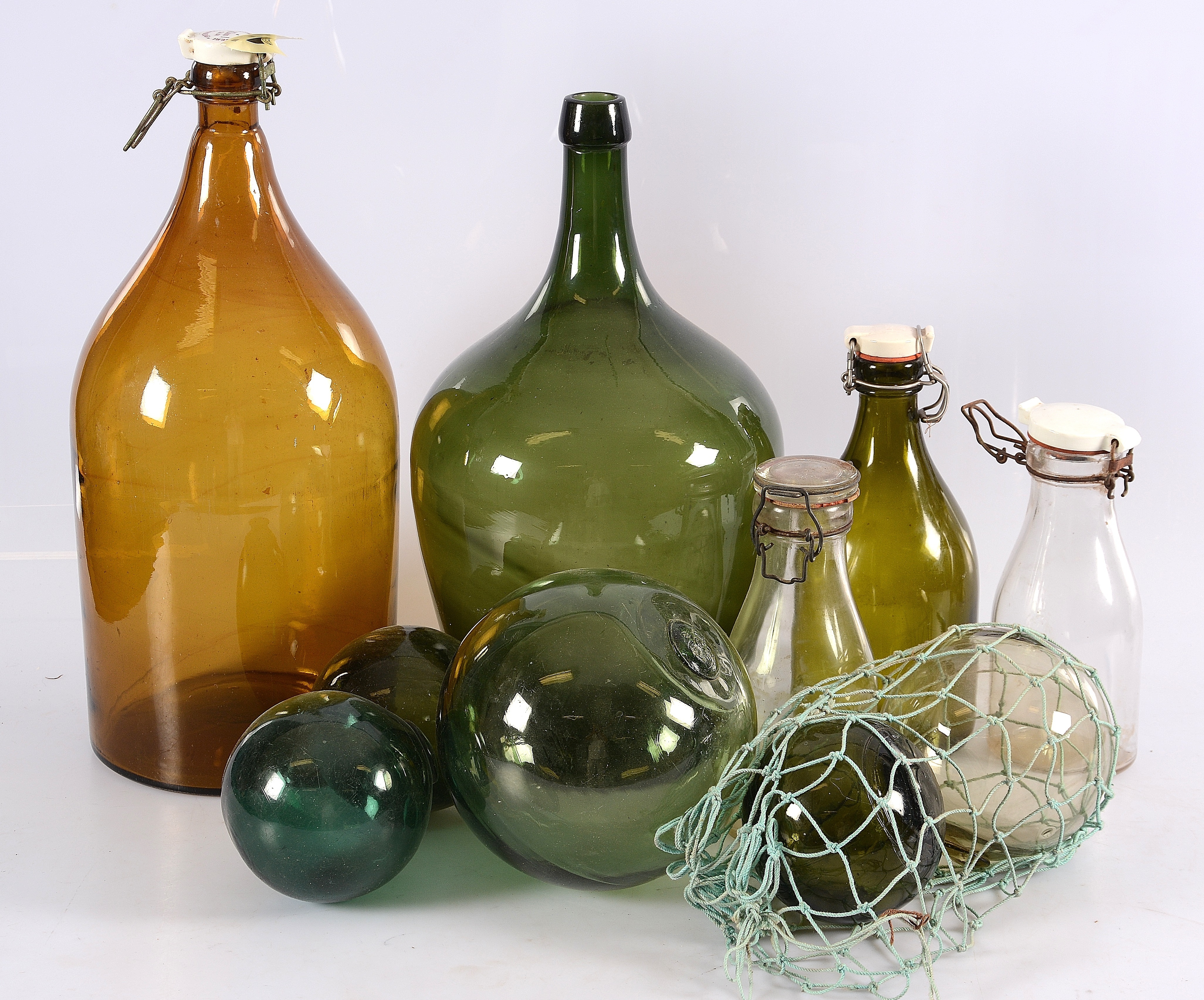 661006. BRYGGERIFLASKOR SAMT GLASFLÖTEN, 10 st, 1900-tal.