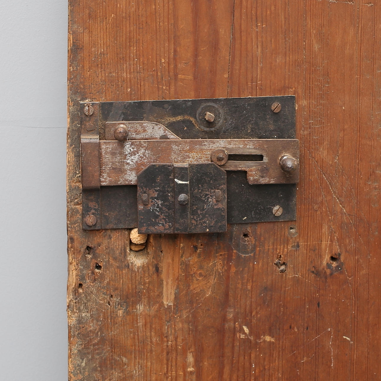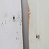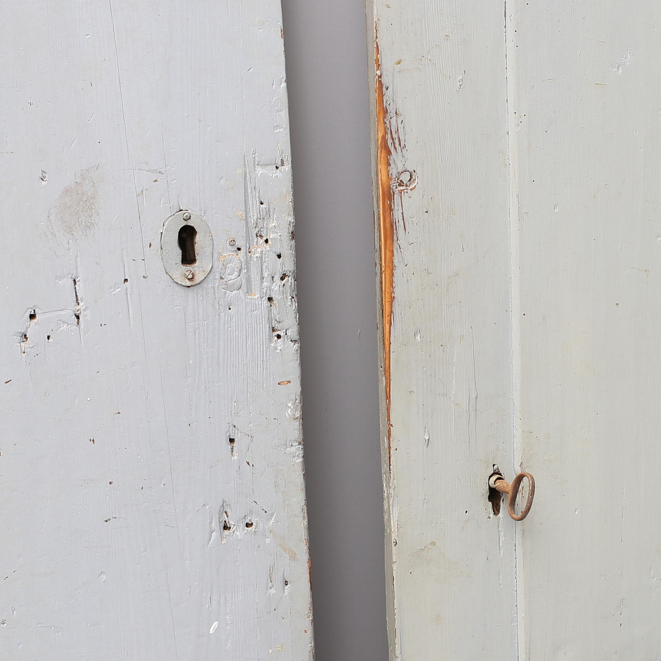 Dörrar med slitage, lås med nyckel rostat fast.