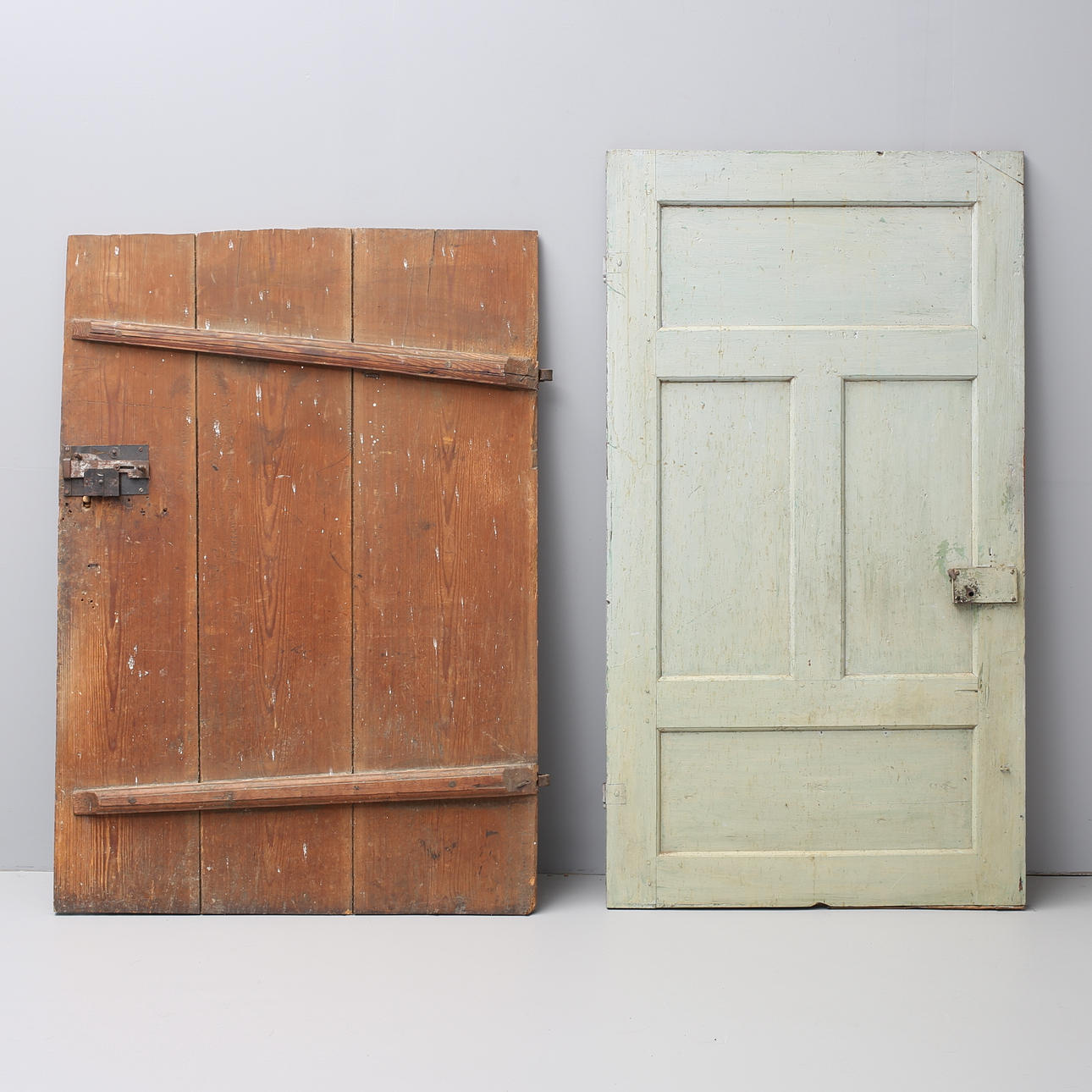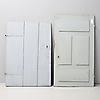 Innedörr med lås och nyckel höjd 164,5 , bredd 91 cm. Ytterdör/logdörr med lås men saknar nyckel höjd ca 147, bredd 103 cm.