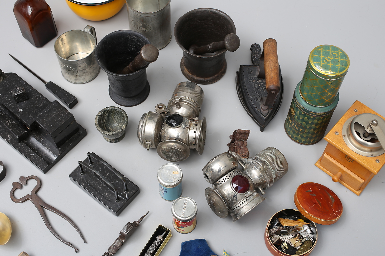 668013. KARBIDLAMPOR, MÄRKEN, MORTLAR m m.