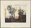 Komposition med hus och träd, signerad och numrerad 36/125, 33x39 cm.
