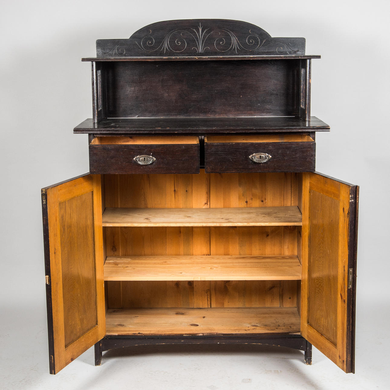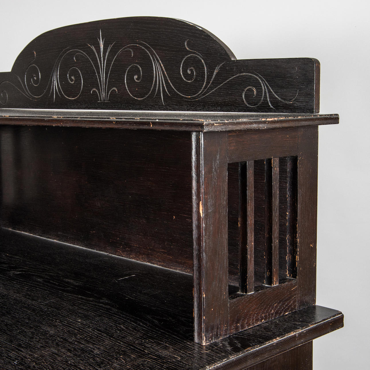 673944. SKÄNK MED HYLLA, mörkbetsad, jugend.