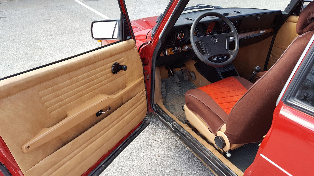 Mindre rost under dörrar. En list fram saknas. En frostplugg saknas i insugningsrör. Skada på skyddsklädsel. I övrigt mycket fint skick. Ej renoverad. Ej solblekt. Startad av auktionsfirma.