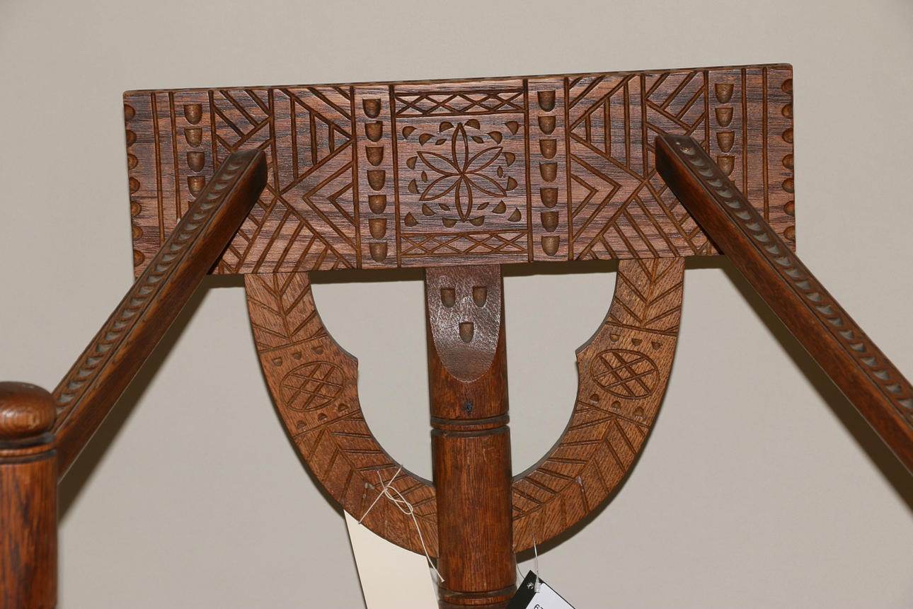 Munkstol med skuren dekor Höjd 82, sitthöjd 42 och bredd 58 cm