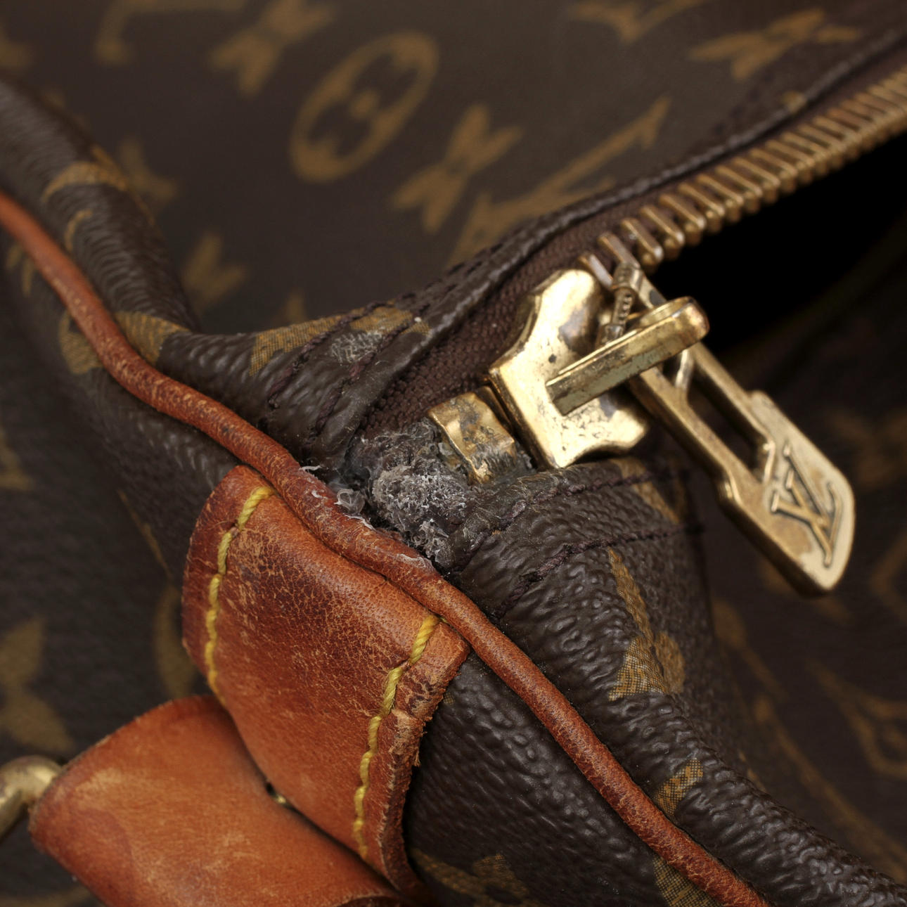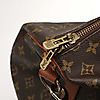 Väska i weekendmodell med monogrammönstrad canvas och detaljer av naturfärgat skinn och gulmetall. Med tillhörande adresstag. Stämpelmärkt "Louis Vuitton, Paris, Made in France".