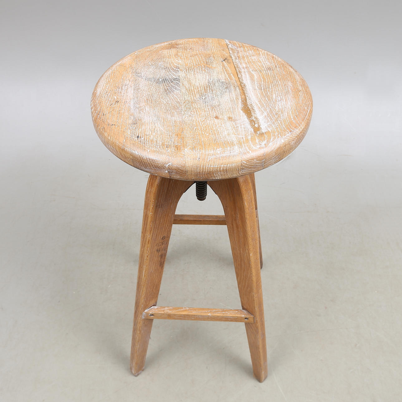 Bruks- och åldersslitage. Sits med spricka.