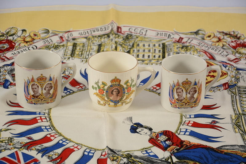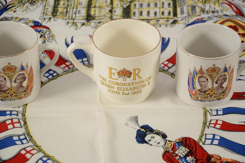 Muggar 3 st England med dekor av Elisabeth och Georg VI.