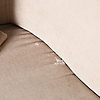 Slitage, hål i tyg vid sits.